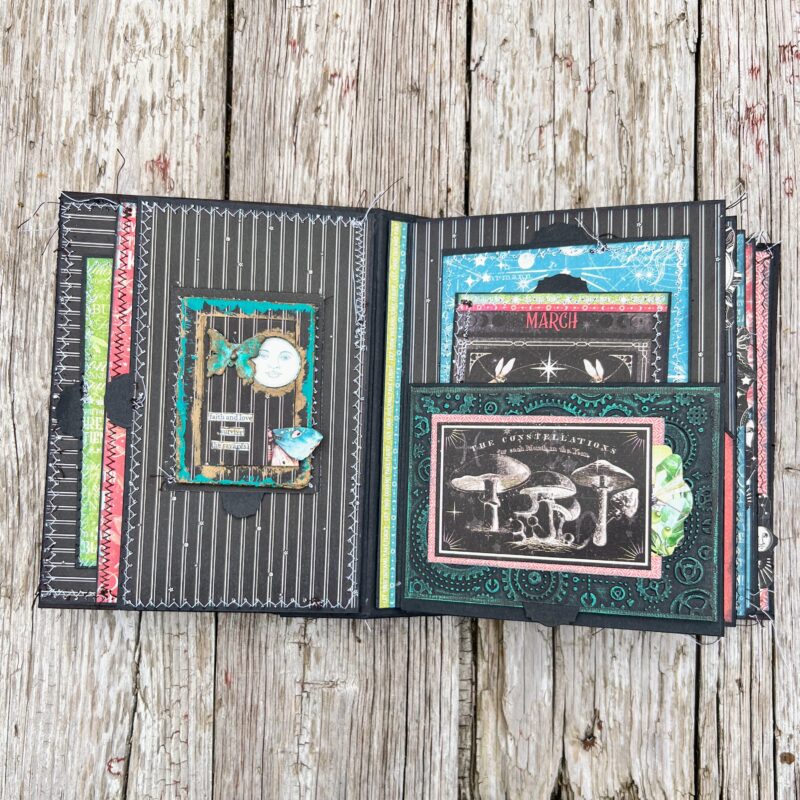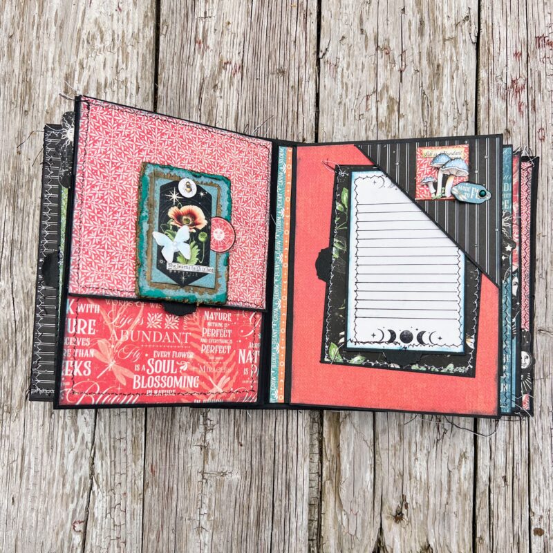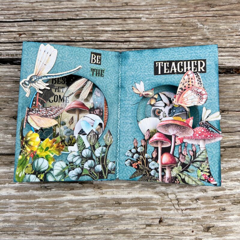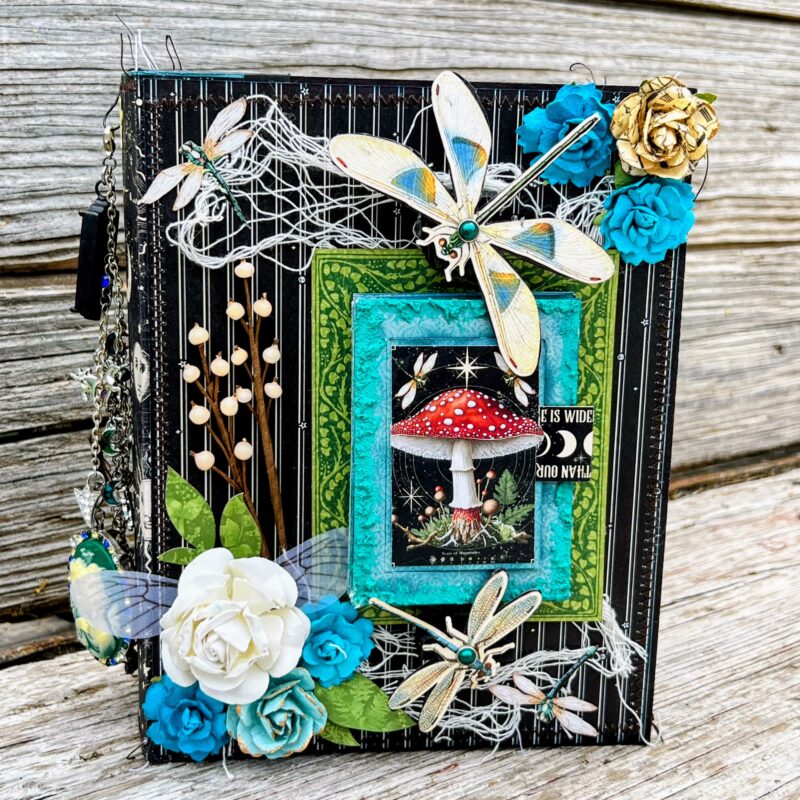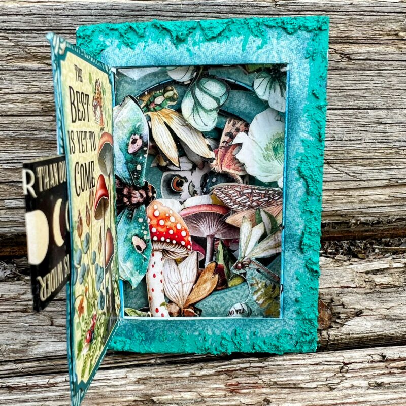 SO many gorgeous details. I especially love the mushrooms. We actually saw one of those red spotted mushrooms while camping in Oregon a few years ago. I really love these papers you used. Great job.