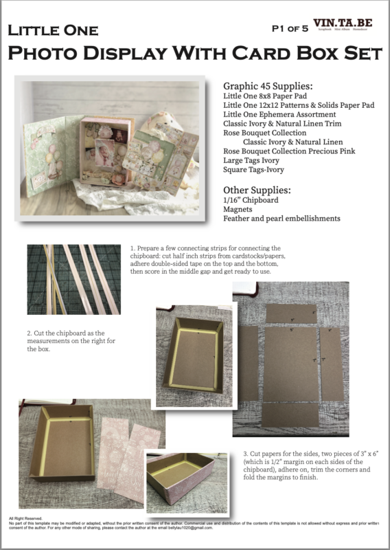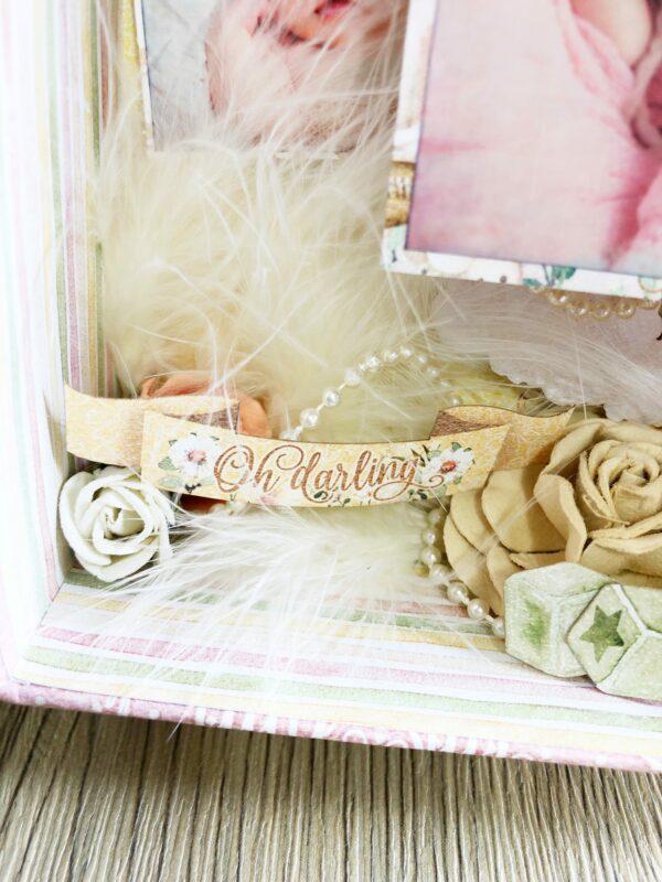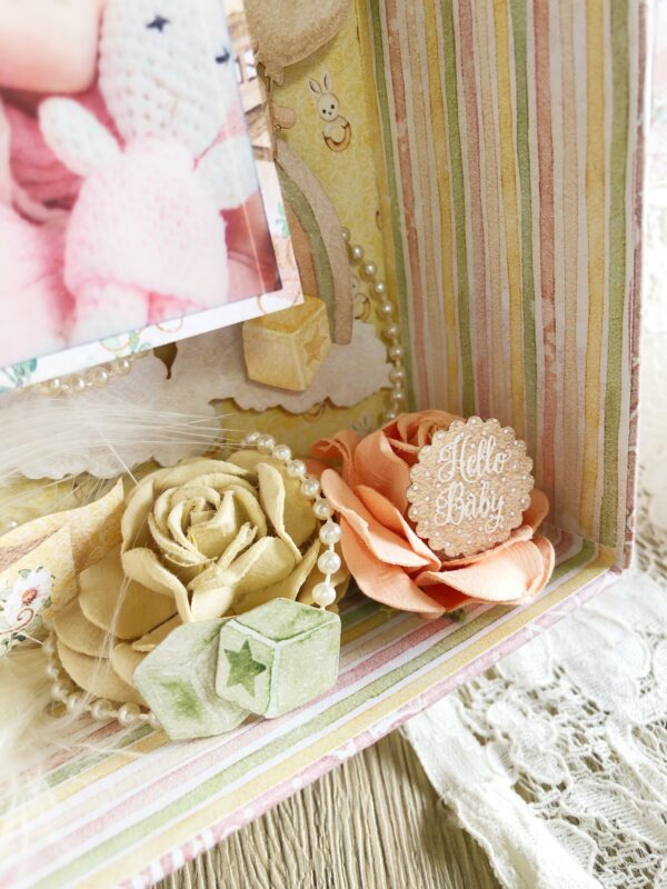 This collection features a range of fantastic patterns and designs that are perfect for creating a cute and playful photo display. The photo display box is decorated with the Graphic 45 Rose Bouquet, and some adorable Little One Ephemera Assortments, making it a lovely complement to the display.