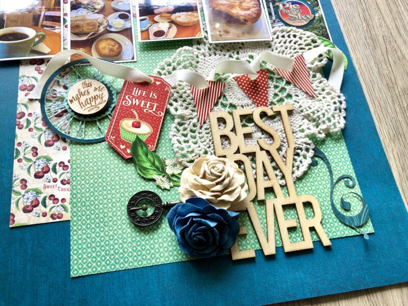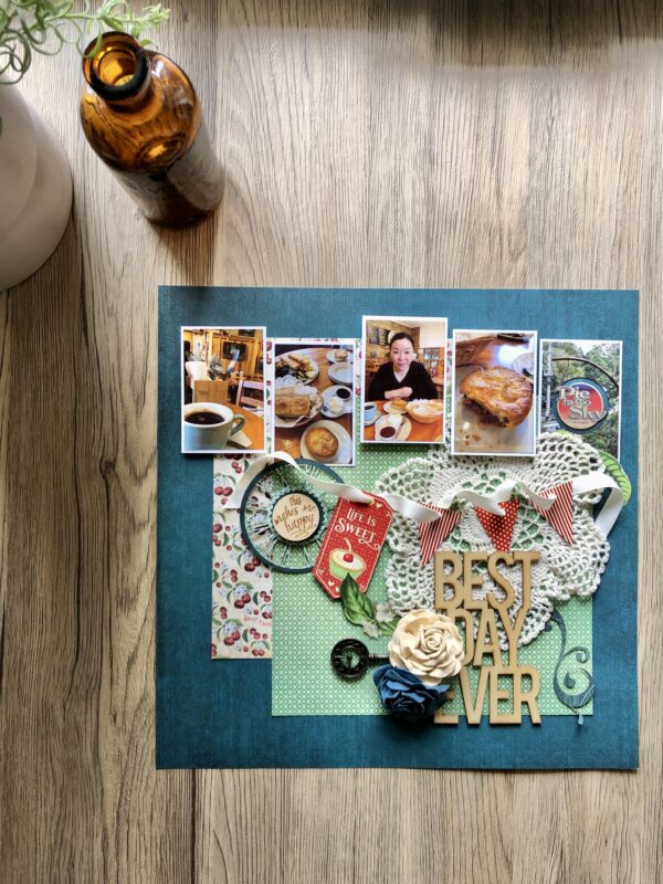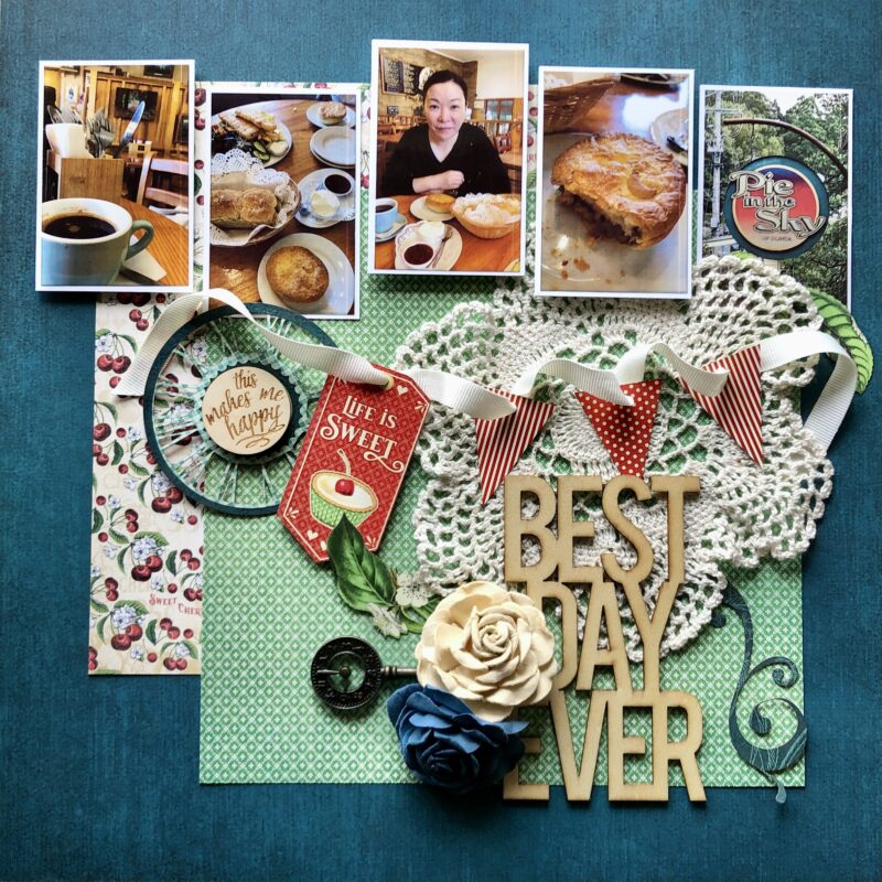 “Hi everyone, Belly’s here today sharing my “Best Day Ever” scrapbook layout featuring the new Graphic 45 Life’s a Bowl of Cherries collection.