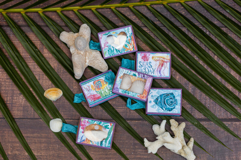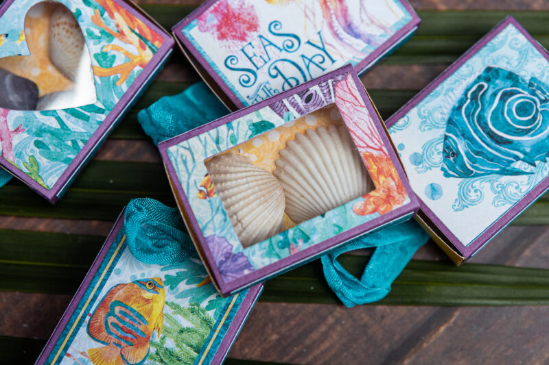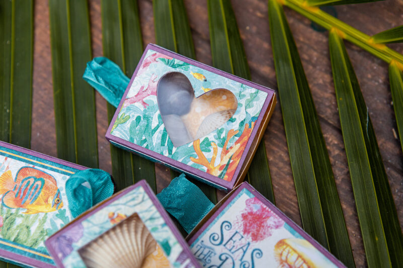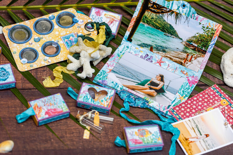 Today, I’d love to share a very special project I created for travelers – the kind of people who always try to hold on to those warmest memories, collecting memorabilia and tiny pieces of their adventures. So, I made six little matchboxes and three of them have lovely windows, perfect for storing treasures like coral, seashells, pebbles, or sea glass.