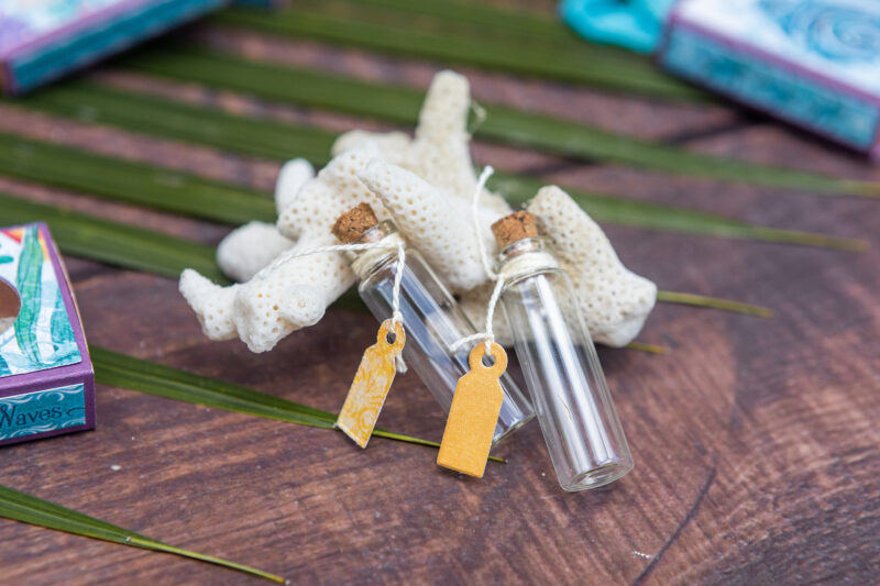 I also included some tiny bottles with mini tags, perfect for collecting sand from your favorite beach and labeling it with the date and location where it was gathered. You can also use them to store other dimensional keepsakes from your travels.