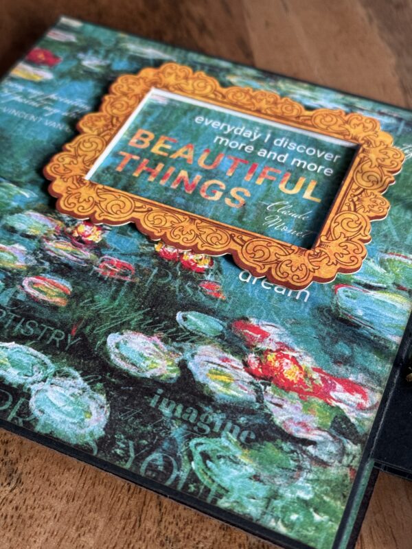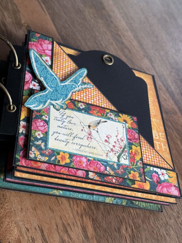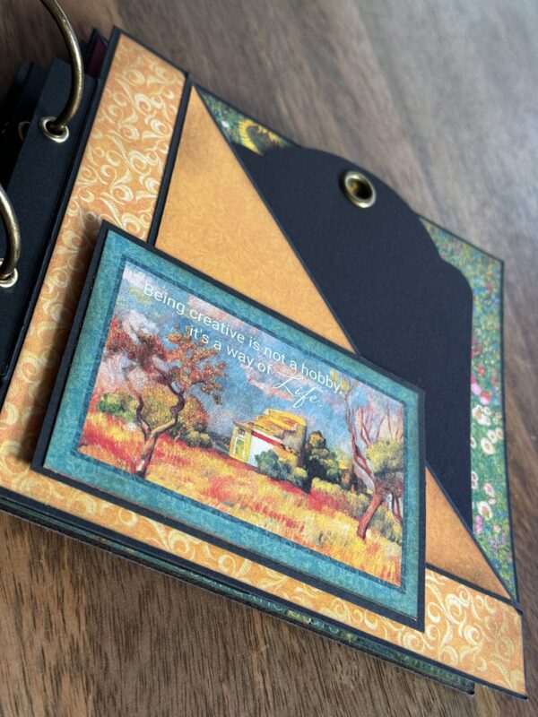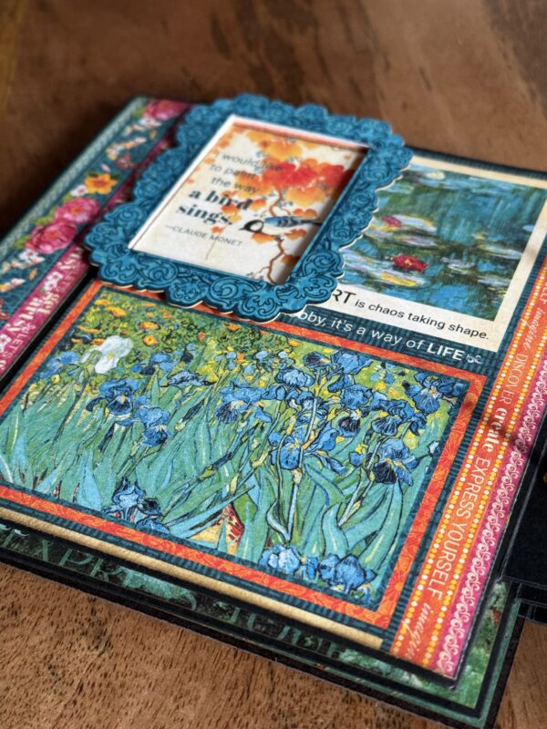 Dive into the world of creativity with Linda Roos‘ stunning mini album featuring Graphic 45’s Let’s Get Artsy paper collection! Linda’s ingenious use of card bases from the Graphic 45 Card Kit, inspired by Nancy Wethington’s designs, elevates this album to a new level of craftiness. With meticulously decorated pages, adorned with 3D tape to make frames pop, this album is not just a showcase of beautiful papers but also a canvas for treasured memories. Whether you have a few photos or many, there’s ample space in this album to preserve your precious moments.