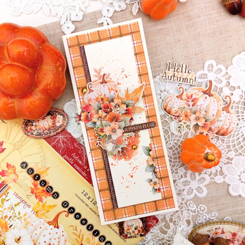 Fall in love with cardmaking this season as Tanya Scrap dazzles us with her stunning Slimline Cards, crafted with our rich Autumn Greetings paper collection! These slimline beauties capture the golden hues and cozy vibes of fall, creating cards that are sure to “leaf” an impression. Whether you’re here for the intricate details or the dreamy autumn color palette, watch the #G45Reels and walk through for up close details and textures and then watch the process video and create your own handmade card.
