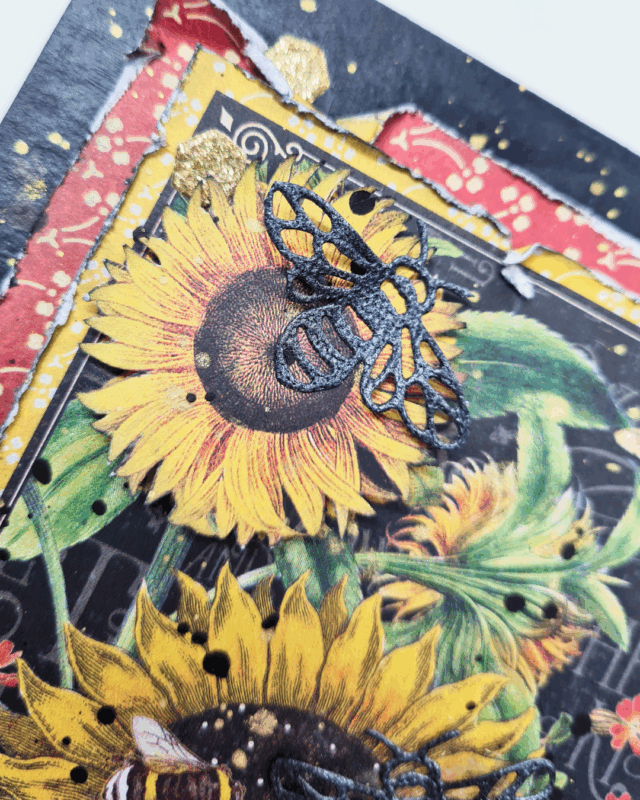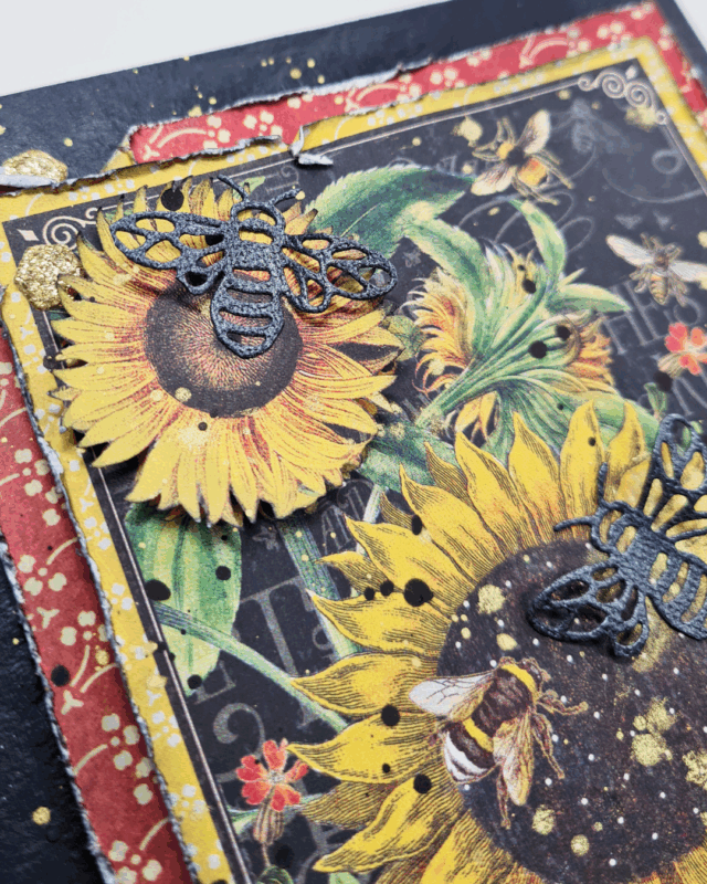 I wanted to create a small wall piece using this beautiful collection and showcase the gorgeous sunflowers and die cuts.