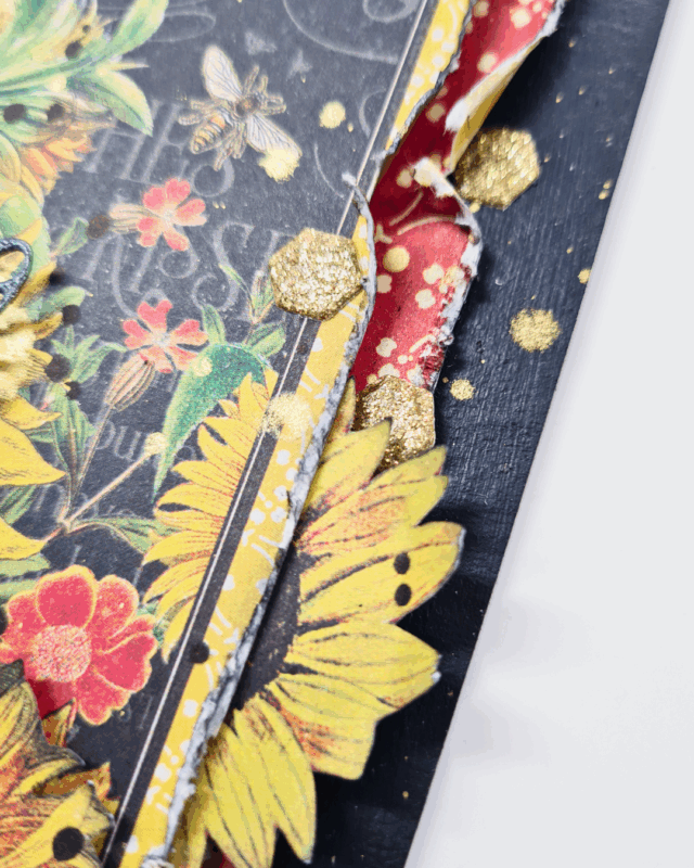 Rough up those paper edges with scissors or a distressing tool to give your piece a rustic, handmade feel. - Don’t forget the glitter: