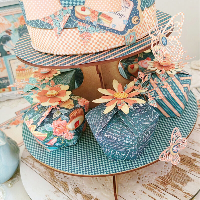 Both the cupcake and cake boxes can be opened up to add sweet little treats or gifts. This project will be perfect as a centerpiece of a table for a themed party or High Tea.