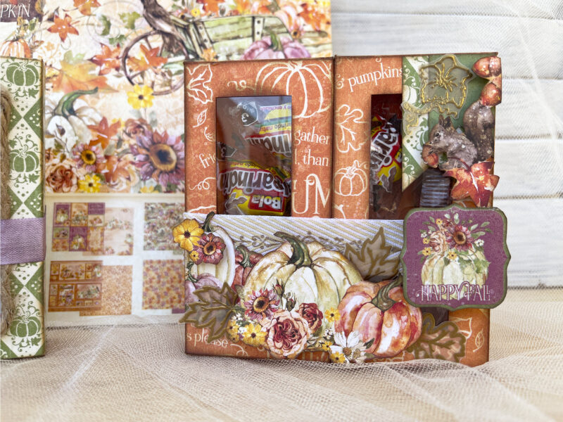 “Hello dear crafters! This is Cecilia sharing a quick tutorial to learn how to make an Autumn Treat Box with the gorgeous Hello Pumpkin by our beloved Graphic 45 which is perfect for the next and so close Holidays! Join me on Instagram to follow the quick tutorial but if you prefer a slow tutorial you’ll find it in my YouTube channel as well. What do you need?