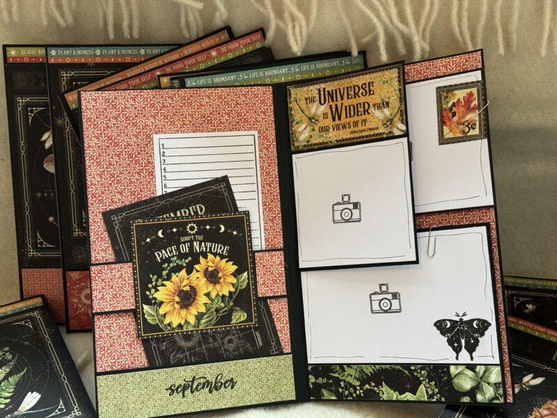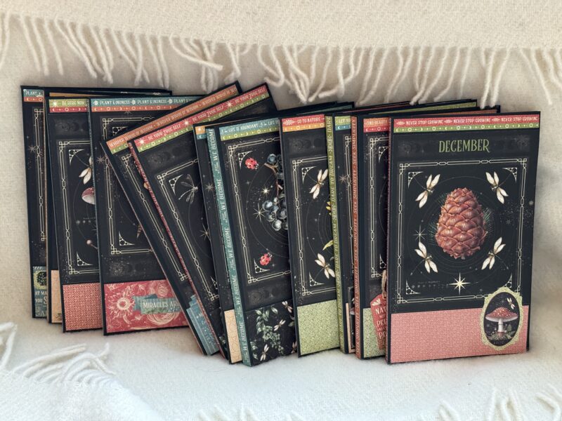 This is the time of the year to make a type of calendar or something to put memories of the coming year in. And of course Graphic45 releases a beautiful paperline every year to help us make on. This year it’s Life is Abundant and I get it. Some of you may not like that it is so dark but I just love how the amazing images pop in the black.
