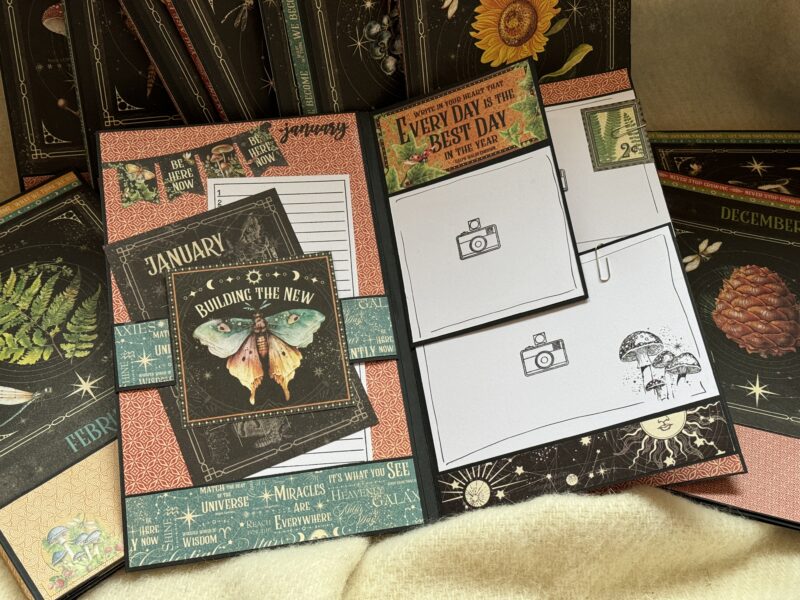 Making a calendar type of album is a bit tricky because it’s 12 months long and tends to be very big. I don’t like big spins. So instead I made 12 folios and a simple folio because it also tends to get a bit boring making 12 folios the same way, LOL. But simple isn’t bad, sometimes simple is really great and turns out really nice.