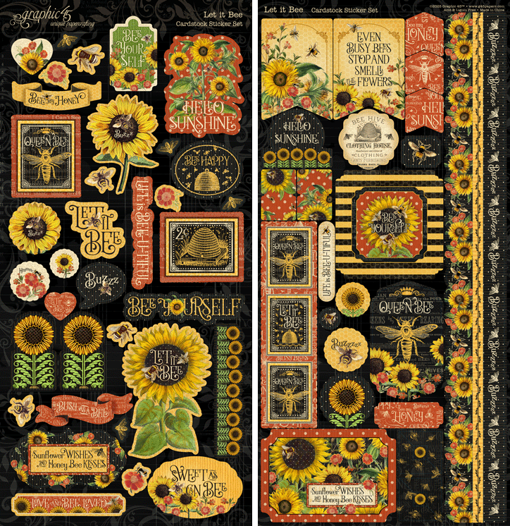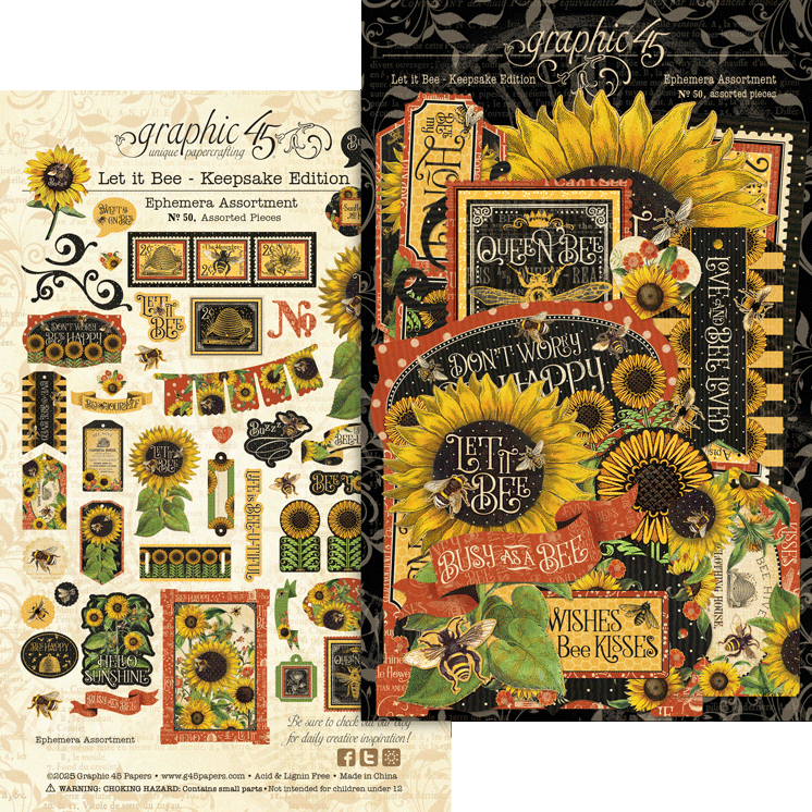 Get ready to create buzz-worthy projects with Graphic 45’s Let it Bee – Keepsake Edition Pack! This 142-piece collector’s set is filled with cheerful sunflowers, golden bees, and bright red poppies against a bold black backdrop—perfect for scrapbookers, card makers, and DIY crafters.