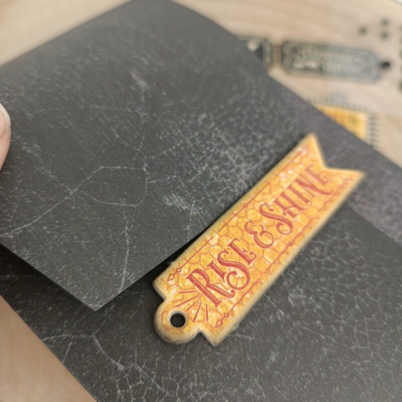 Chipboard pieces are a quick way fo make a closure for the envelope, that we can open and close many times!!
