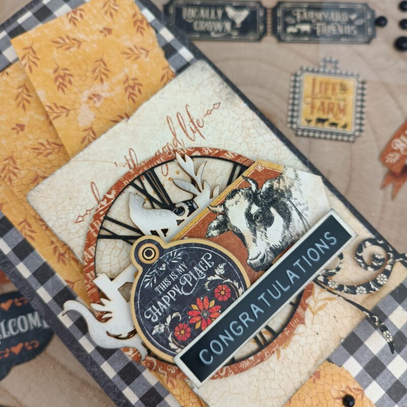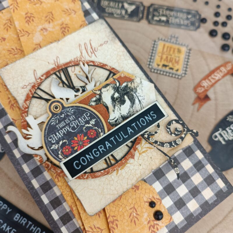“Today i have very simple slim envelope to share as inspiration for this month challenge. If you have a party, you can always prepare a gift envelope to give money, gift card, tickets of a concert, gift code, a letter… anything that is small and you can put on a envelope to give. I did use an old collection – Farmhouse – but you can recreate this with any collection you want. Maybe you can also create many envelopes and combine them together to make an album. I hope i can make one album with this very soon. Do you think it’s a good idea? Me too!!