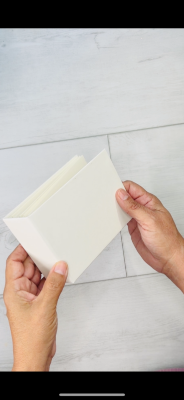 - Cut 5 cardstock pieces at 3 7/8” x 9 ½” score at 4 ¾ and fold in half