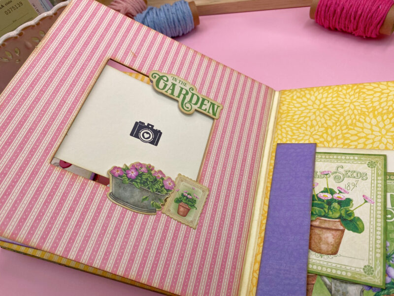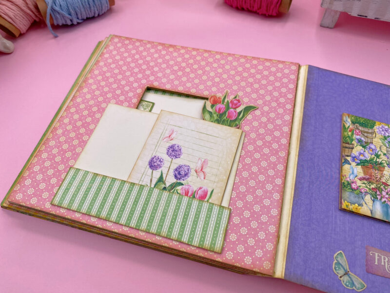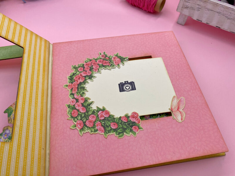 Album’s base is made from already cut chipboards. Finished album measures 8 x 8″ and it’s perfect for expressing your creativity.” ~NJ Paper Crafts