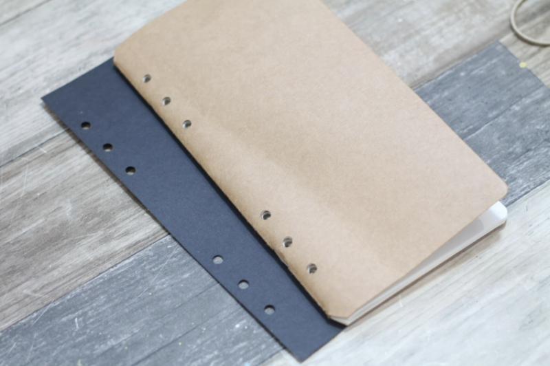 Taking the notebooks out of the Travel Album, I cut a A5 planner base page, lined up the notebook on the template and used a pen to mark my holes. I then took my Crop o Dile and punched the holes. The book would have been too thick to run through my die-cutting machine, and I wanted the holes to be the same on each and every page.