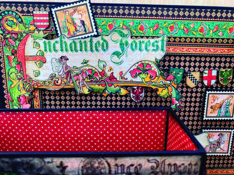 “Hello G45ers, Cecilia here happy to share a desk organizer tutorial created with the fantastique Enchanted Forest DCE paper collection. Because I don’t have a craft room and I use my bedroom to create I decided to make this organizer to storage all the papers, embellishments, cardstock and anything I’m using in the process of creating a new project, in that way I don’t need to look for the elements every day and when I finish I can put the leftover material in one bag to storage it in a rack. This organizer will always be at my desk to find everything quickly and easily. I really love to make my own storage boxes and you can find more ideas with tutorials in the Graphic 45 youtube channel. I hope you like this one and try it, don’t forget to tag me and tag G45 to see yours! Here are the materials list.”