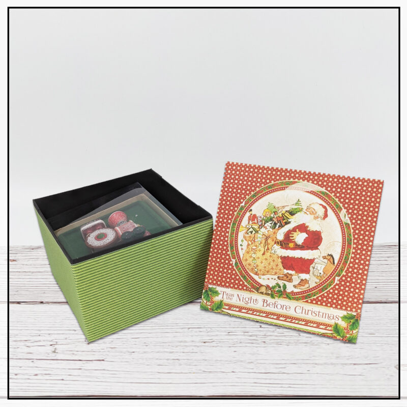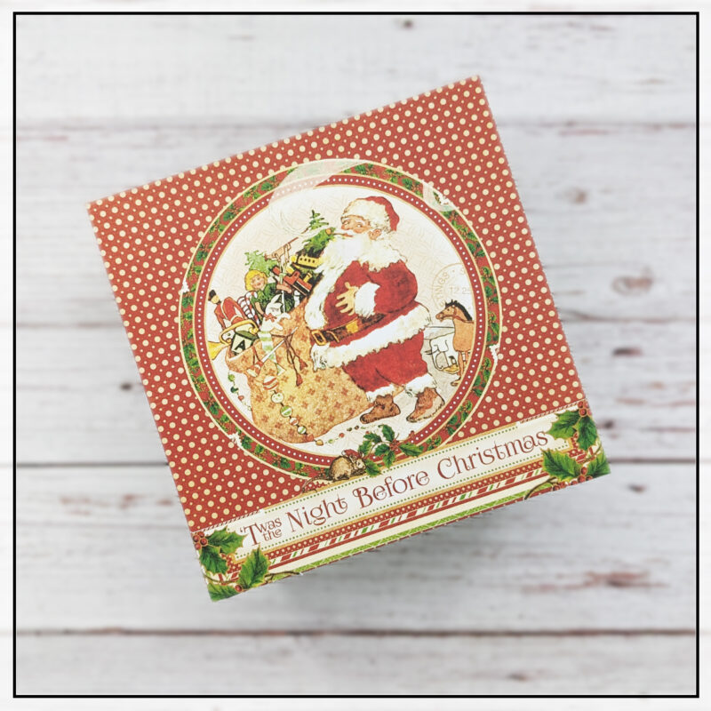 “Hi G45ers! This is Linh (@LVHandcrafted) and I’m sharing a tutorial showing how to make a custom box using G45’s medium weight chipboard and T’was the Night Before Christmas collection. These boxes are sturdy and great to use for storage, memory keepsake / treasure boxes, etc. I’m making this one as a gift box. Not only will it contain a gift inside but the box itself makes for a nice gift too!