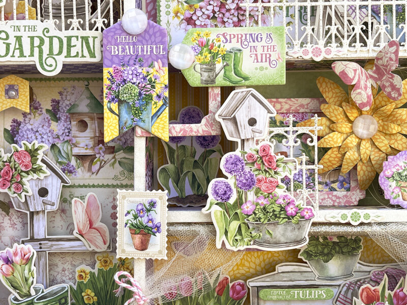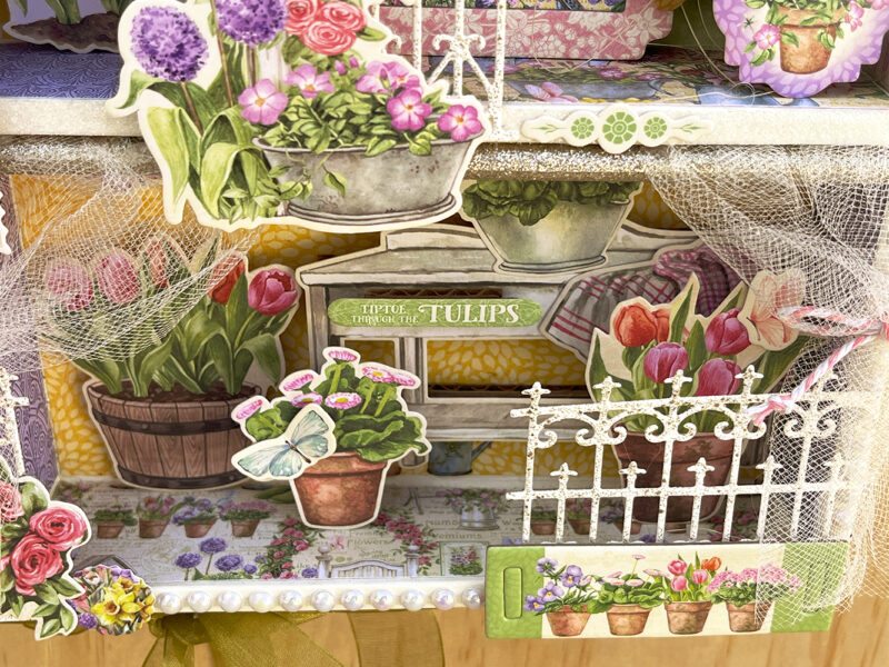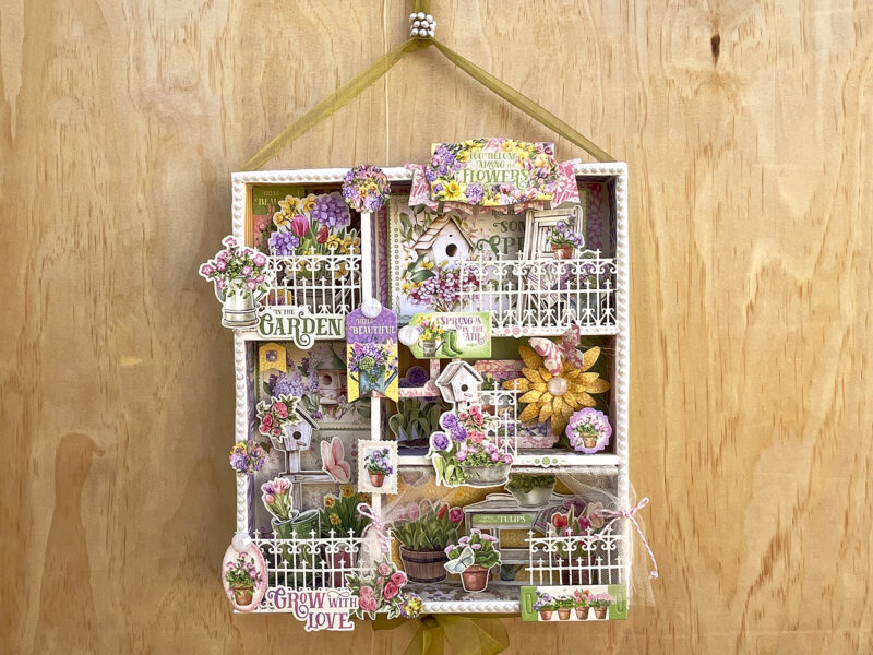 For this month’s project #G45Style I show you how to upcycle a cardboard box and make something pretty which is easy if you use the adorable Grow with Love paper collection to welcome anybody that comes into your home by hanging this shadow box in your front door. We create a lot of garbage so it is important to reuse as much as we can and with our craft skills make something that brings us joy. I made a tutorial to teach you how to transform the box in this beautiful garden filled with lots of stunning flowers and pots. I really hope that you like it and will give it a try. The tutorial is not quite short because I will show you a few tips and tricks to make this.