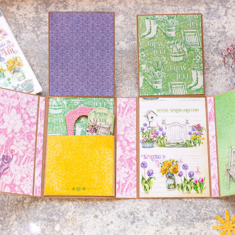 “Hello! Spring is just around the corner and today I am bringing you a new project using the perfect collection for this season. I will be showing you how to create a double folded folio with easy steps.