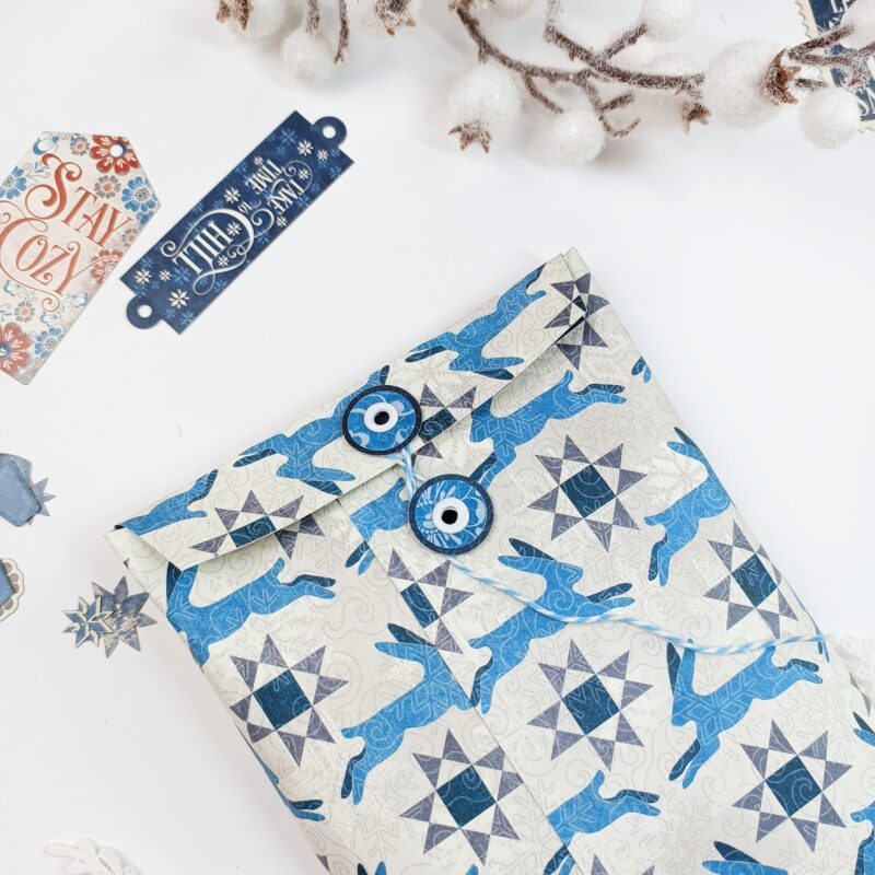 Do you have a small birthday gift and you run out of paper to wrap it? Really!!? I’m sure you have lots of Scrapbooking paper on your craft room!! So grab your graphic 45 Let’s Get Cosy collection and Let’s Get Crafty!!