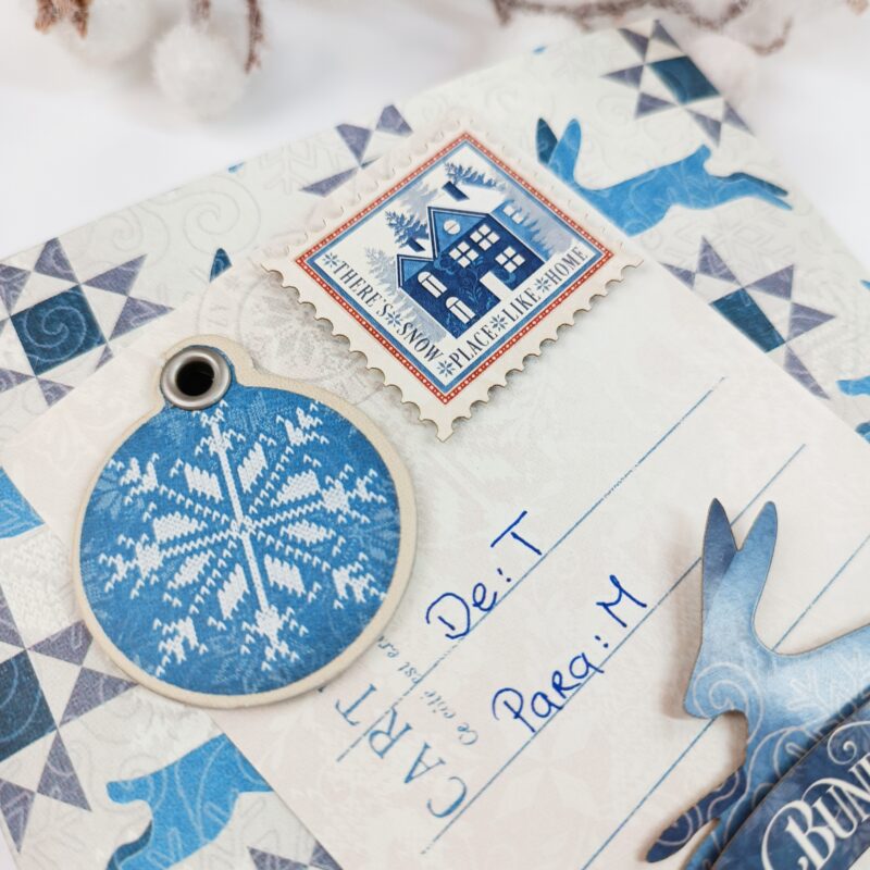 TIP: use the die cut ephemera assortment, the chipboards and cards to embellish your envelope