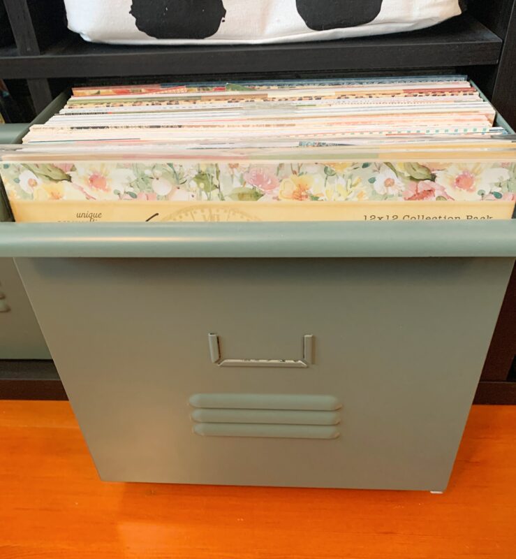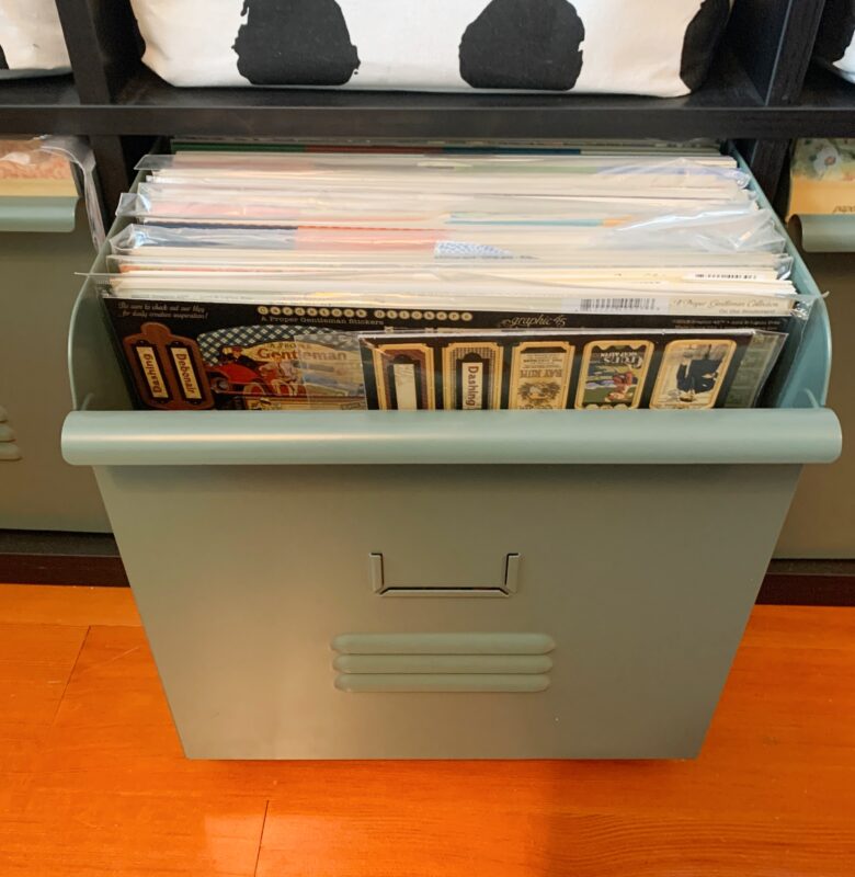 This bin holds 8×8 and 6×6 Paper Pads as well as 12×12 Cardstock Stickers when they were purchased separately and not included in the Collection Packs.Â