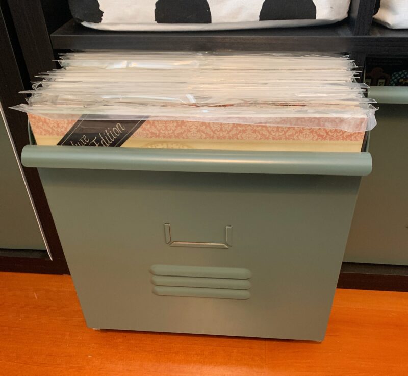 These three green bins hold past Collections as well as Deluxe Collector Editions.Â