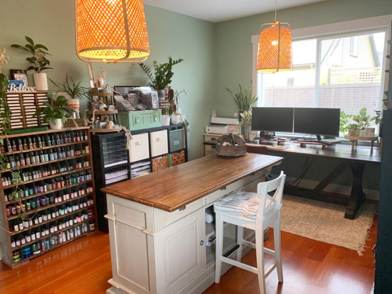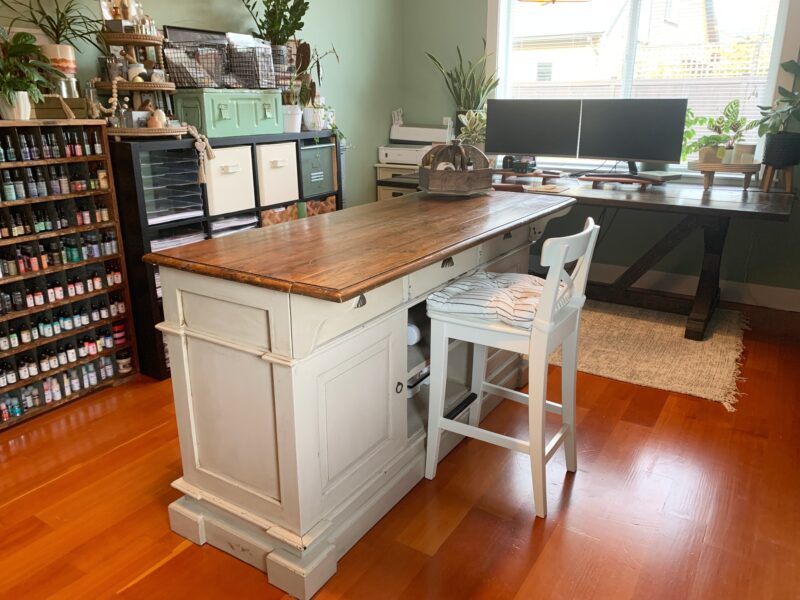 I have curated many pieces from different places and by far my most treasured item is my craft island which I have placed in the middle of the room. This piece is perfect as it is a sturdy surface and has a ton of storage. It’s also the perfect height if I want to stand or sit while I craft.