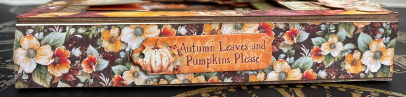 Spine of album: Used the same patterned paper as the back page. I added the autumn leaves chipboard sentiment to the spine.