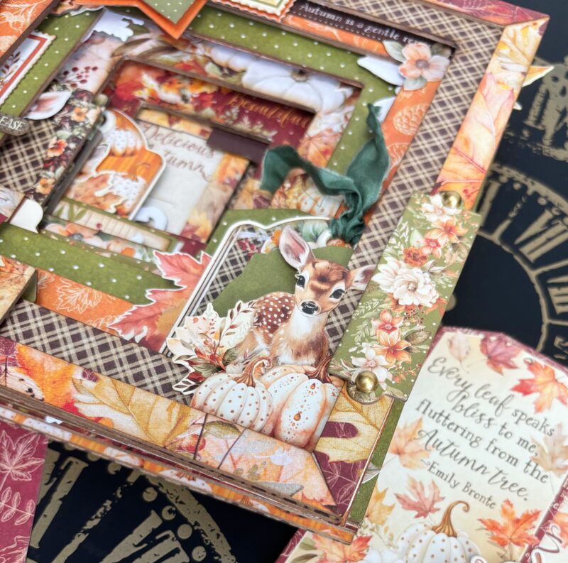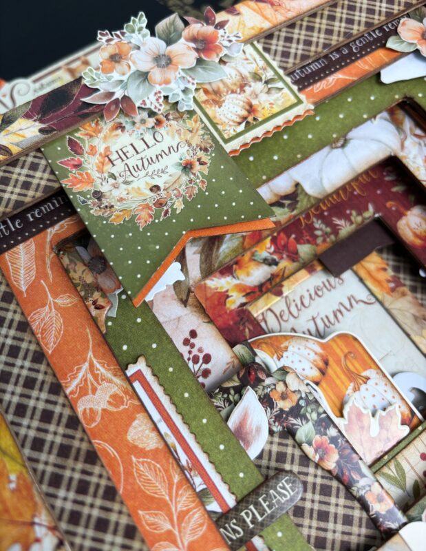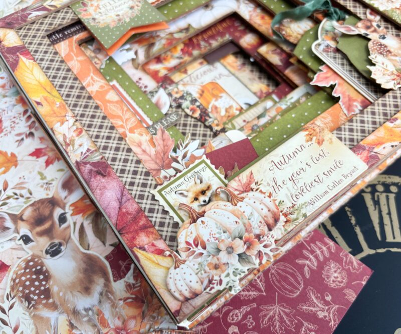 I’m thrilled to be back on the blog this month sharing this beautiful Hello Autumn Tunnel Album that is based off of the Grow with Love – “Spring is in the Air” Tunnel Album Kit and features the Autumn Greetings Collection and 2-in-1 Tunnel & Pyramid Chipboard Albums.