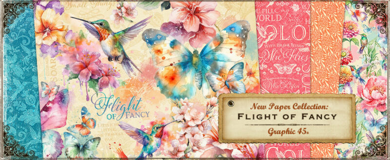 Welcome back, G45ers, to Day 2 of our thrilling Spring Sneak Peeks! Today, we’re taking flight into a realm of imagination with our enchanting new paper collection, Flight of Fancy. Prepare to soar through a world of whimsy and wonder as we unveil this captivating assortment, complete with die-cut embellishments, stickers, rub-ons, and chipboard elements. But that’s not all – as a special treat, we’re offering four exclusive Sneak Peek Prizes! Entering to win is as easy as leaving a comment. So, buckle up and get ready for a journey into creativity unlike any other. Let your imagination take flight with Graphic 45!