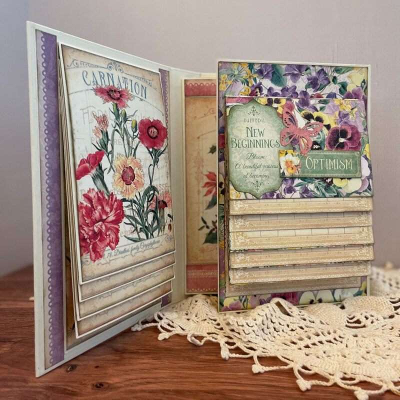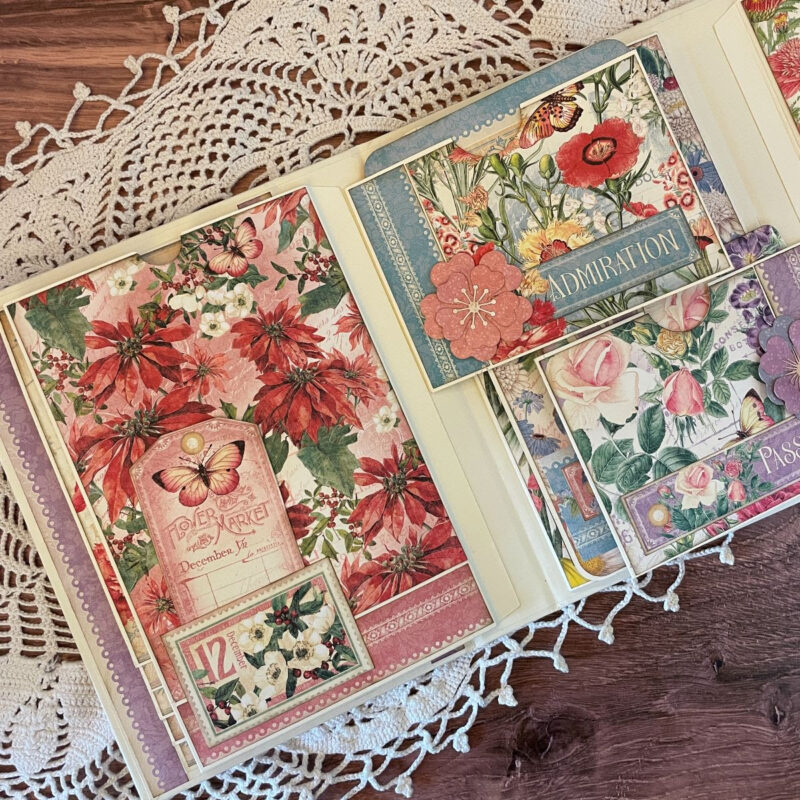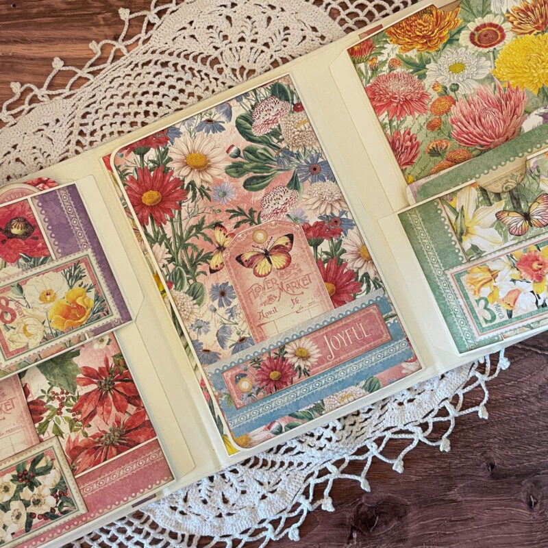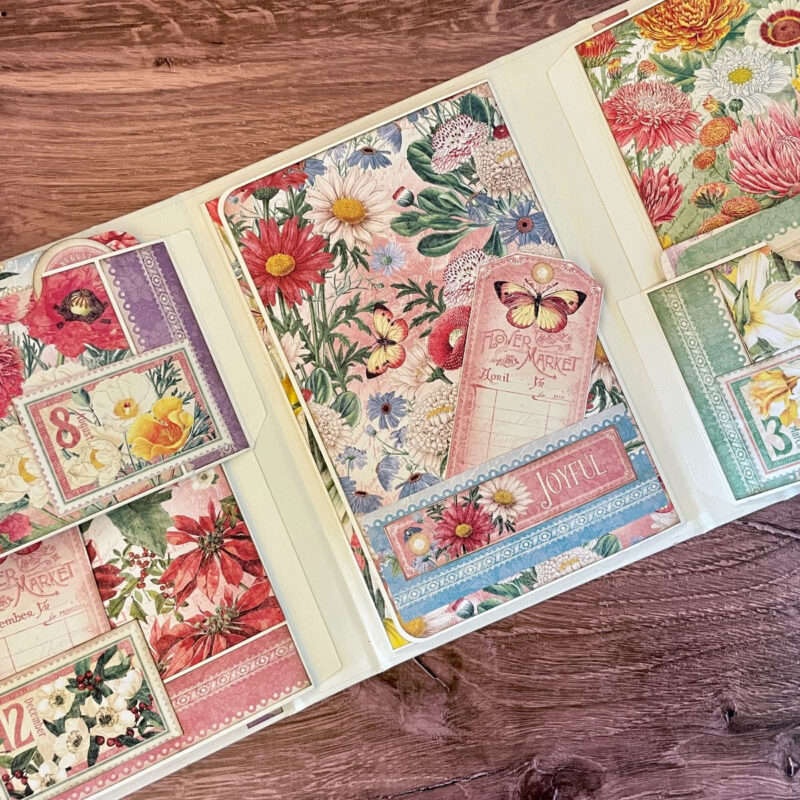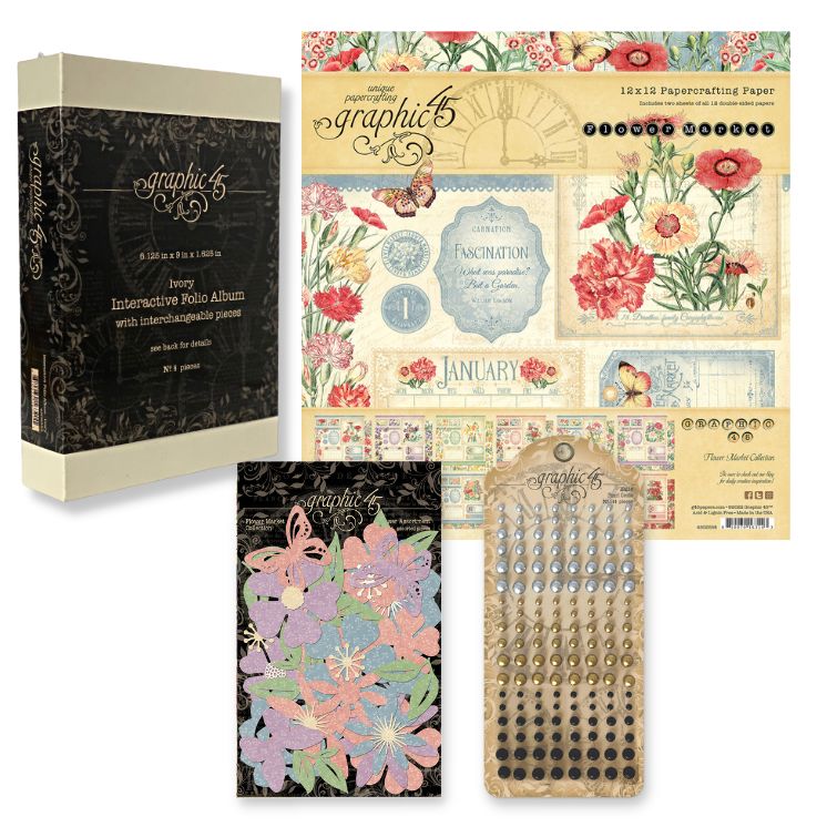 Design a captivating Flower Market Interactive Folio Album, offering customizable configurations, allowing you to rearrange section elements to your liking. This album employs a symmetrical layout system, enabling you to make the most of each month’s cut-a-part papers. Utilize the leftover pieces to add a personal touch to your album. We have a step-by-step project sheet for you to download complete with color photos. Shop the bundle and start creating!