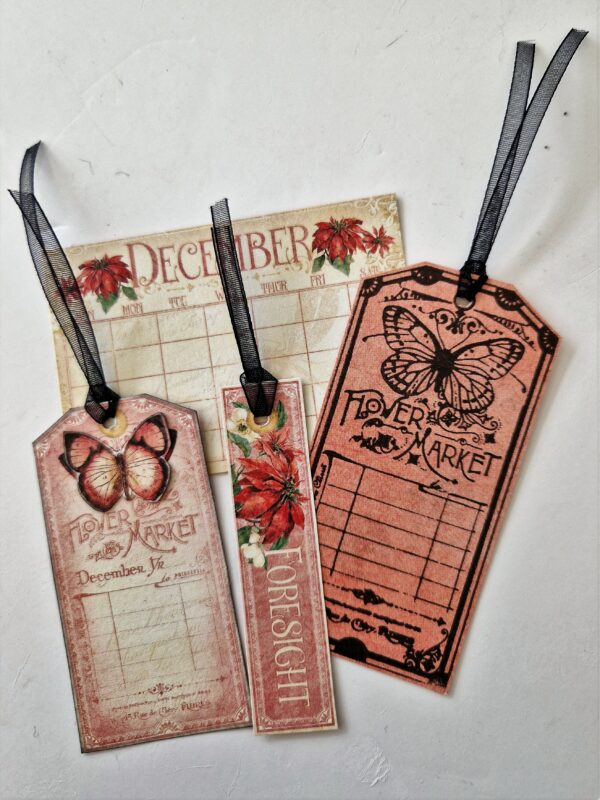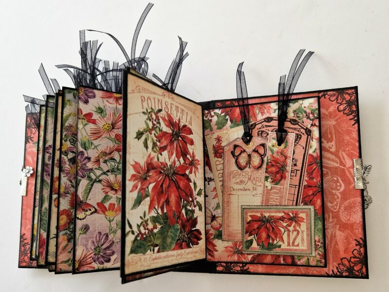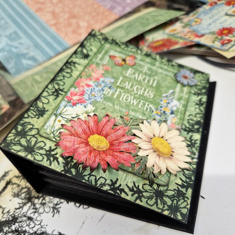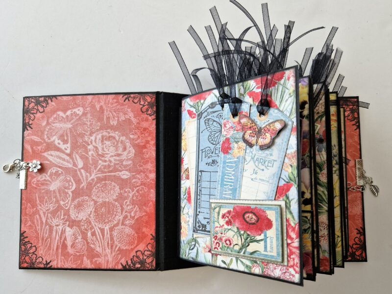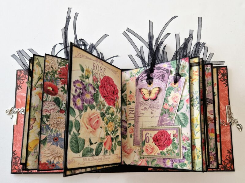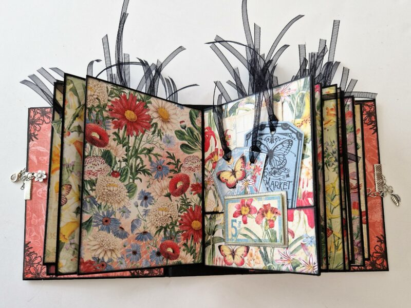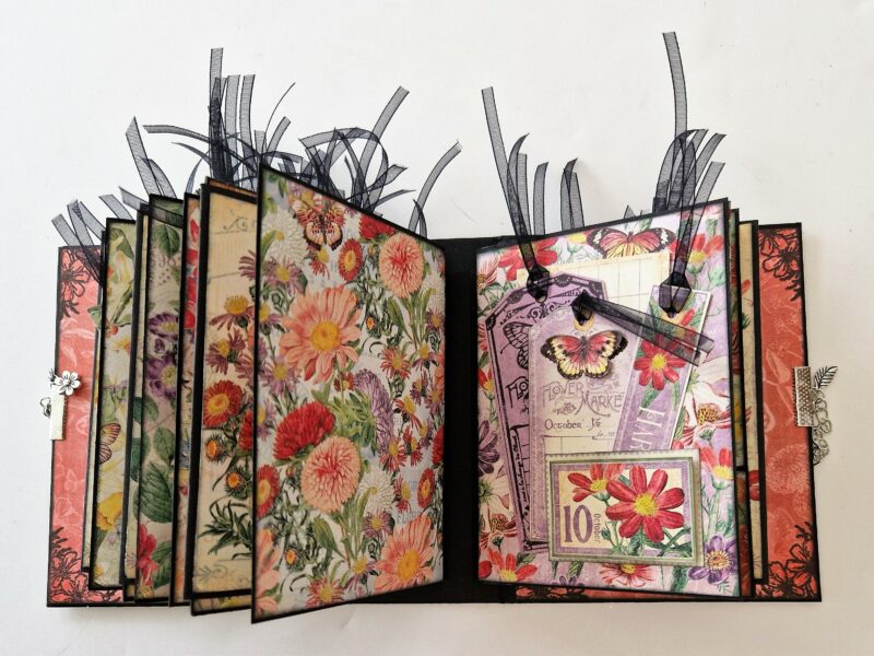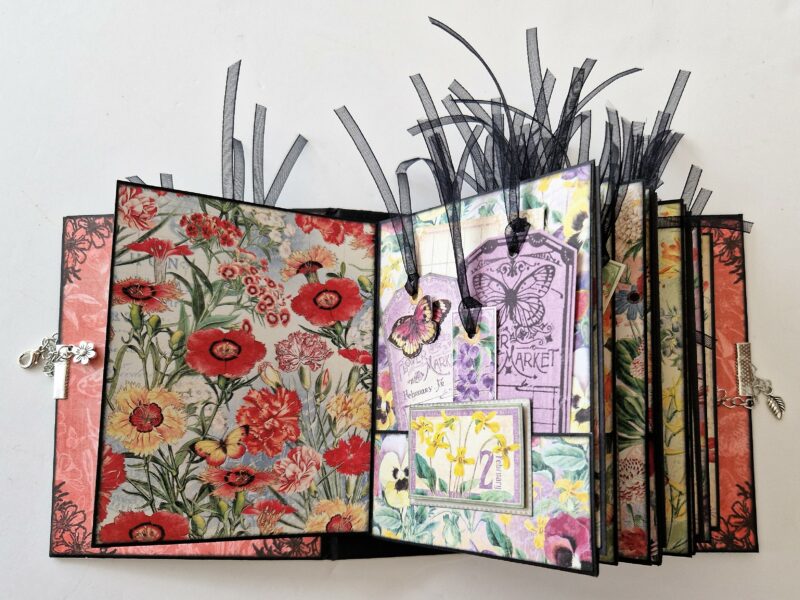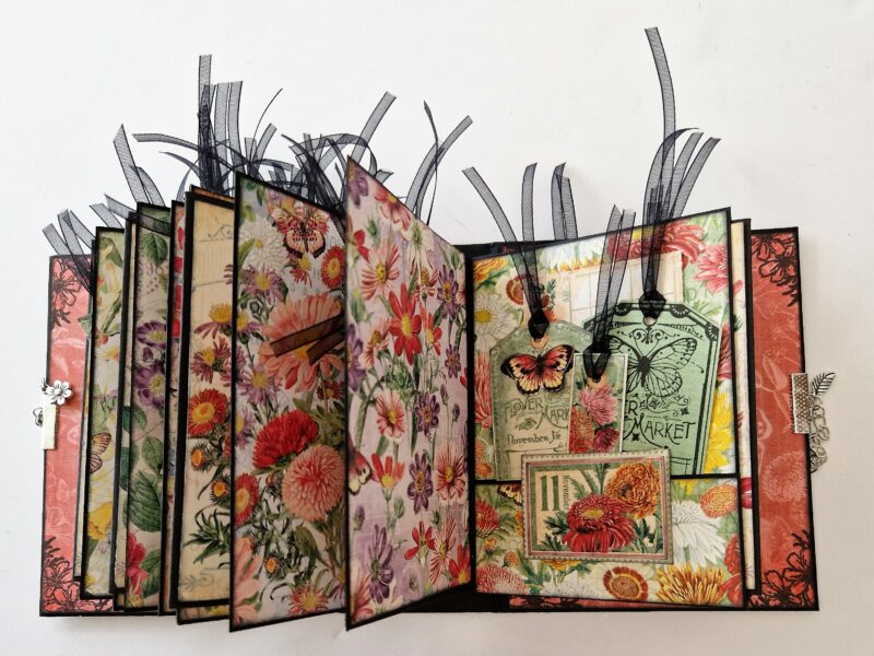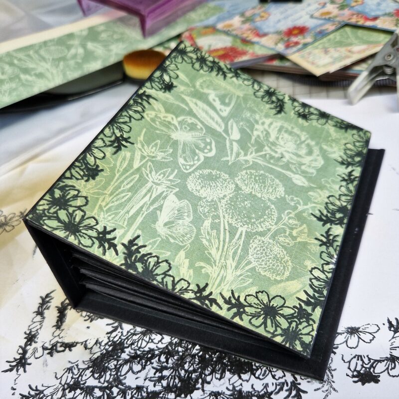 I’ve taken an ATC book and decorated it with Flower Market – here’s what I used.