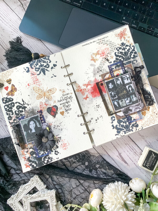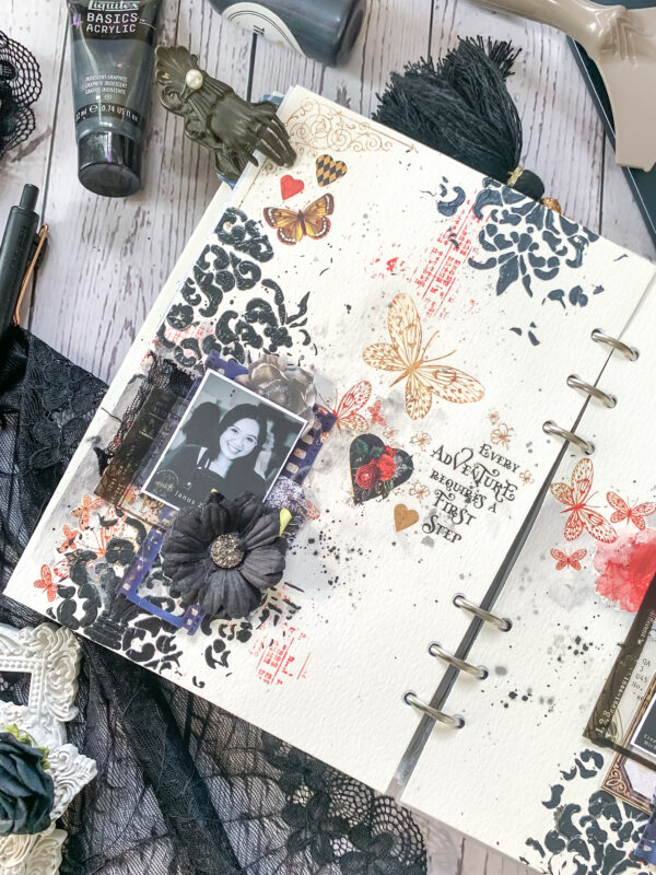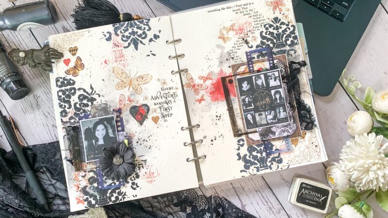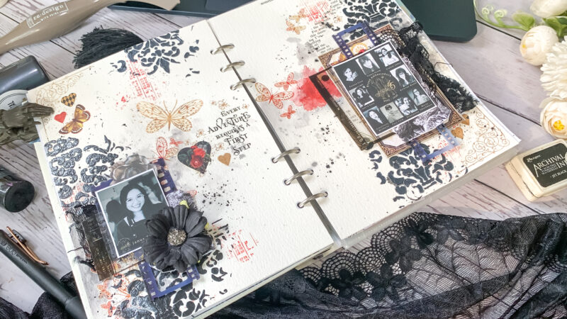 We’re excited to introduce Janus Zate, one of our newest Graphic 45 Brand Ambassadors for 2025–2026! To mark the occasion, Janus has created a striking red and black mixed media journal spread using our Curiouser & Curiouser paper collection. Starting with a blank page, she layers textures, rub-on transfers, paints, and papers to transform it into a bold design full of depth and personality. If you’ve ever wondered how to take your mixed media spreads from simple to show-stopping, Janus’s tutorial is packed with step-by-step techniques, tips for using rub-ons on textured paper, and ideas for balancing color and contrast. This project is proof that with the right layers, your pages can tell a powerful story.