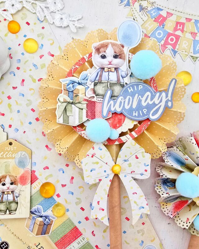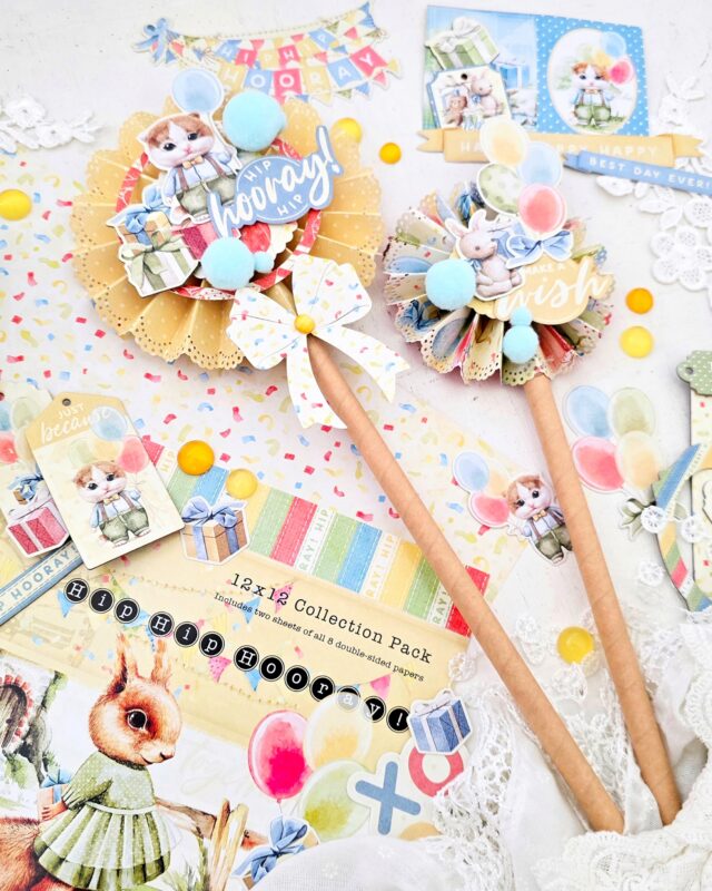 Looking for a sweet and simple DIY party craft that packs a punch of personality? These Lollipop Rosettes created by Graphic 45 Grand Brand Ambassador Tanya Scrap are just the ticket! Using the Hip Hip Hooray Collection, Tanya transforms paper, pom poms, and straws into whimsical party décor you can use as cake toppers, gift bag tags, banner accents, or later repurpose in a scrapbook album filled with party pics. This project is a perfect example of #SimplyG45 – creative, affordable, and oh-so-cute! Whether you’re planning a birthday bash or just want to jazz up a journal, these DIY rosettes are the perfect finishing touch.