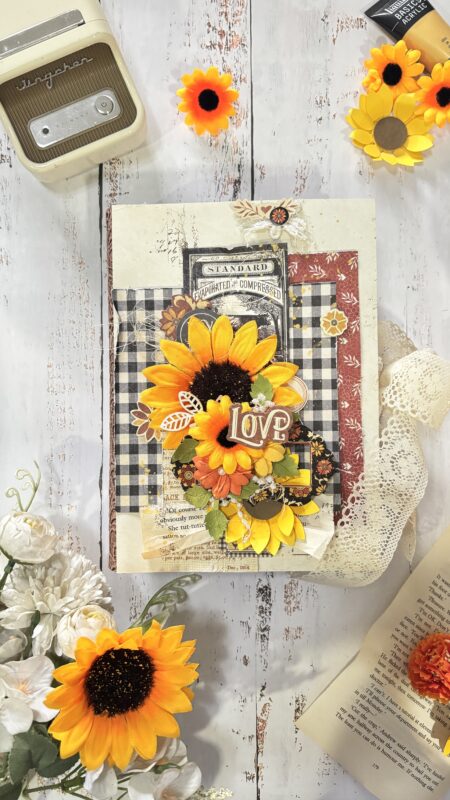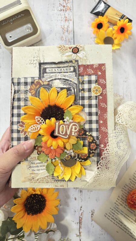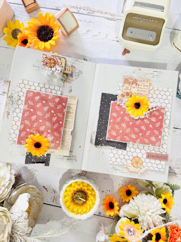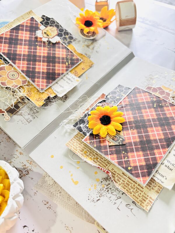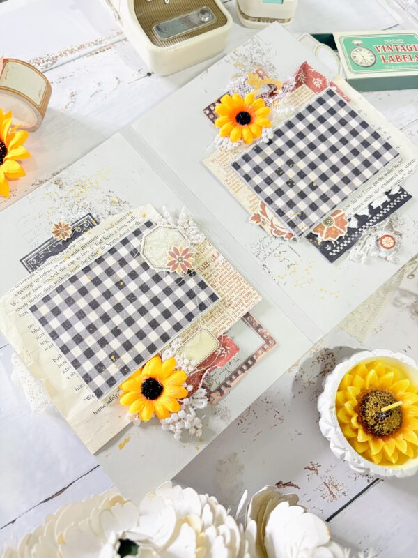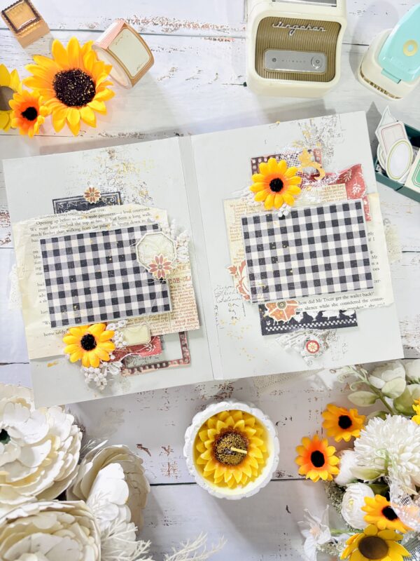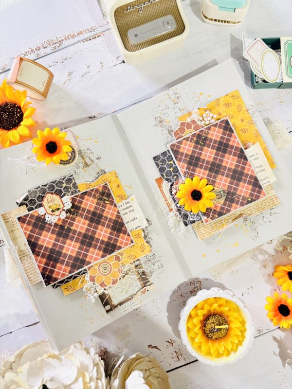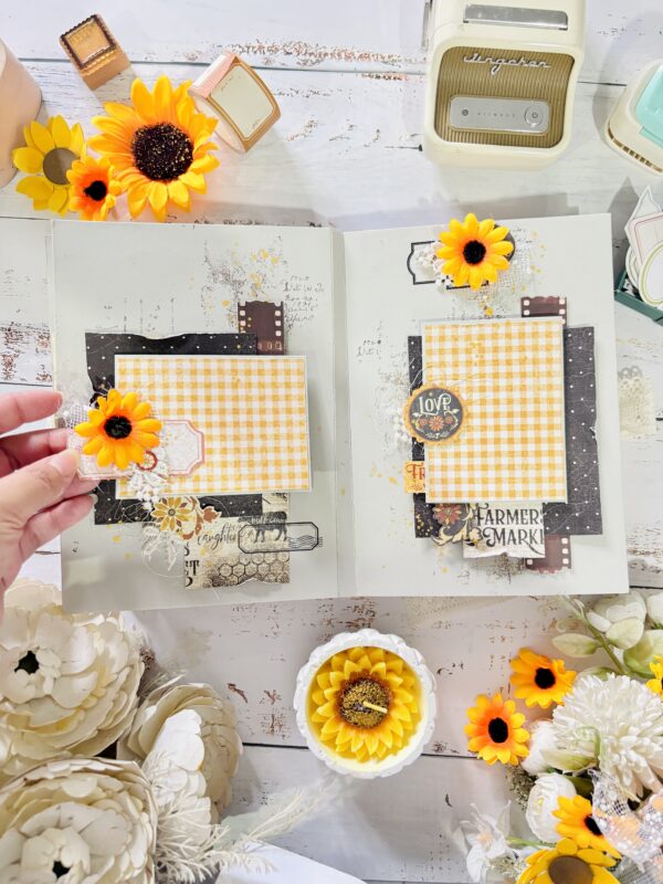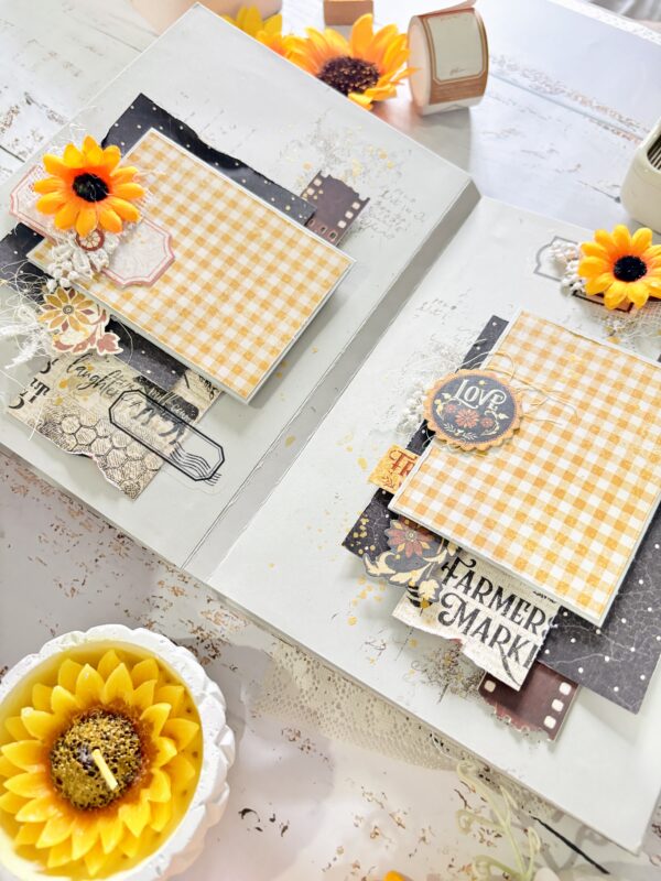 There’s something about sunflowers that makes me feel grounded and hopeful. I wanted that feeling to be seen through each page of the album, the warmth, the comfort and the gentle reminder to slow down and appreciate the simple moments.