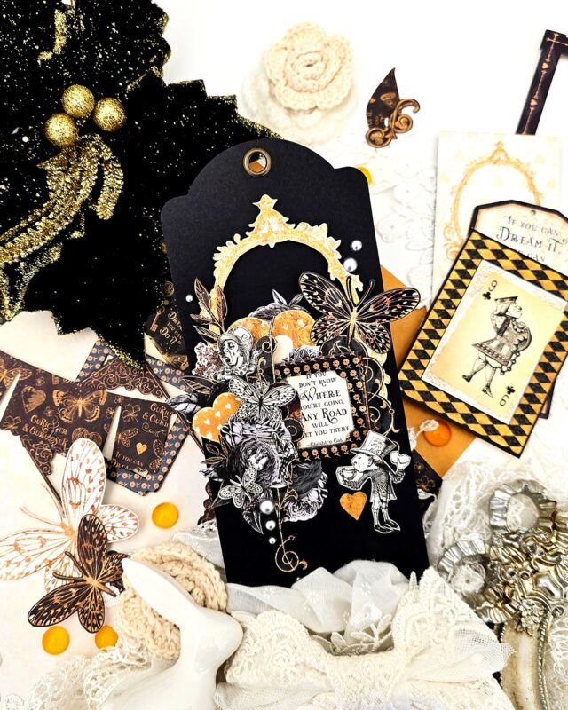 We’re excited to kick off the week with a stunning dose of inspiration from Grand Brand Ambassador Tanya Scrap. Today, Tanya shares her enchanting Butterflies & Botanicals Collage Tag, created with the whimsical Curiouser & Curiouser paper collection—now available in our Clearance section while supplies last!