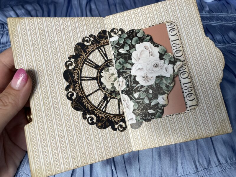 Now you have a cardholder in the center of the folder when you open up the folder. Time to decorate as you wish.Ā