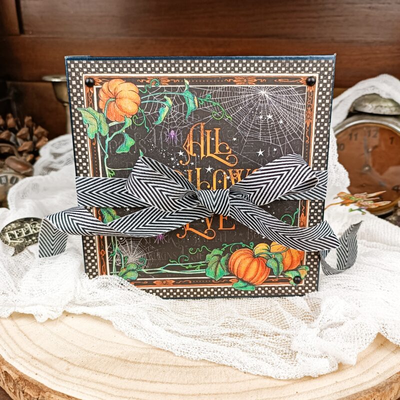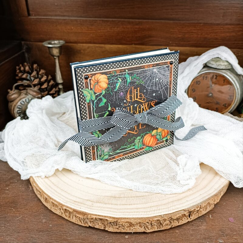 Today i have a halloween theme album to share with you!! I use one of my favorite collection – Midnight Tales. It’s very simple to make but i did add some details with texture and color to make it fun. I think this is a very fun theme to play with, i always like to challenge me in different projects with different themes, so i can use the color palette. Sorry that you can’t find this collection of Graphic 45 shop anymore, but you can use any other collection that you want.