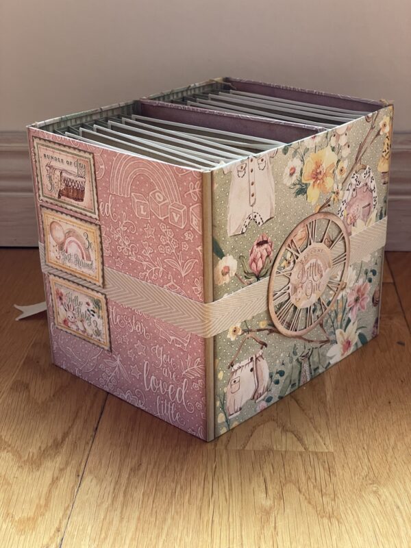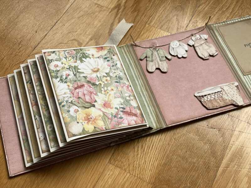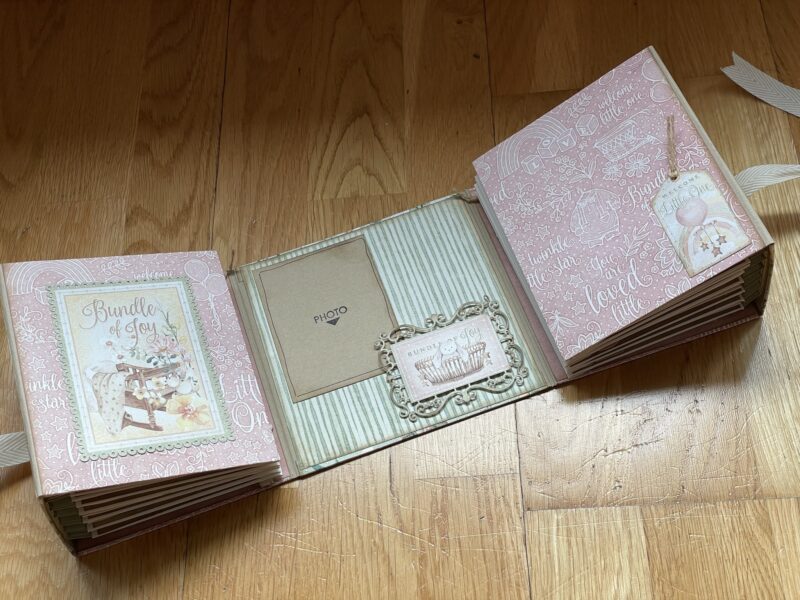 “Hi! I’m back with a new album for you! I was inspired by #G45Lady and #G45Gentelman but in a different way as in a mother and father of a newborn baby. So If you are looking for a baby album for your baby’s first year or looking for a tutorial to make on for a friend or family member that fits 6 fotos a month I have the perfect one for you.