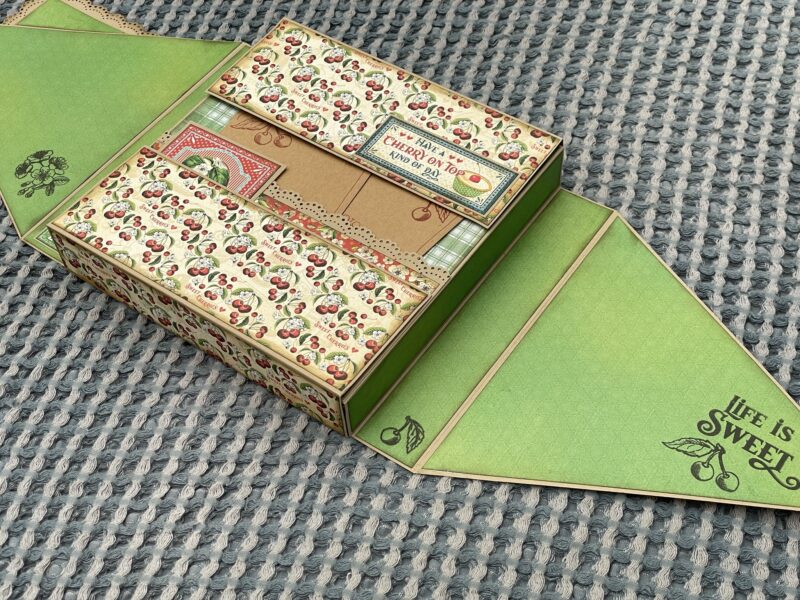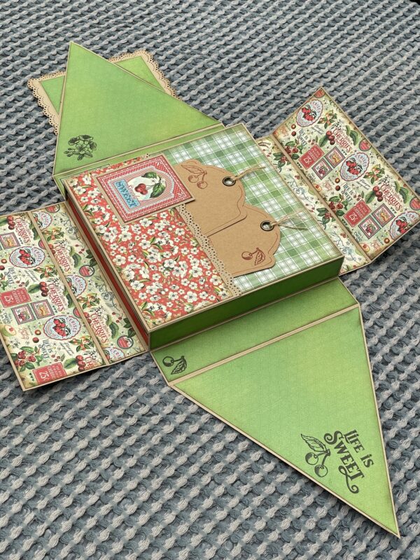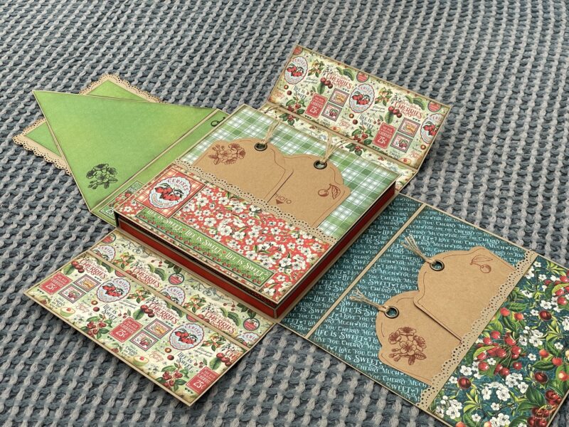Cherries make me happy and so does chocolate. So I was thinking of a box of chocolate when I was designing this album. I wanted the nice feeling of a box of cherries and chocolate in my hand when it was finished. I also wanted the feeling of curiosity of not knowing what’s inside this magical box, the feeling that you don’t immediately know how to open it. I Am happy with the result and hoping that you feel the same feeling and want to try it out as well.