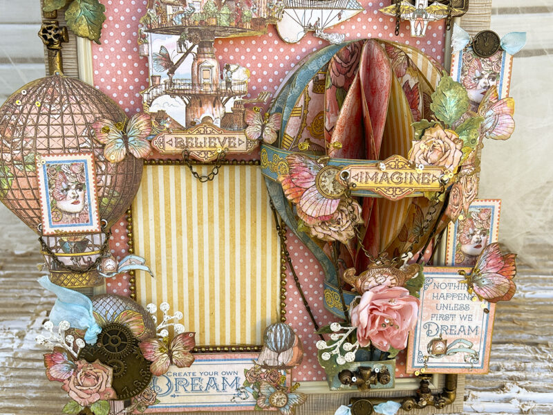 “Hello G45ers! Cecilia here to share with you this photo frame made with the stunning Imagine DCE paper pad by Graphic 45. What an amazing papers right? The name of this collection is the perfect description of what we can feel when we see all the stunning designs, imagination!! I hope you’ll like it as much as I do and give it a try.