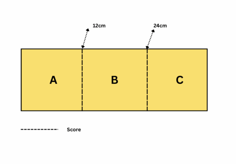 - Score the longer (36cm) side at 12 cm and 24 cm.