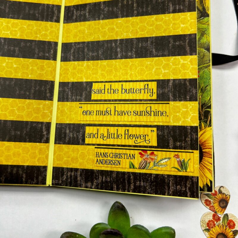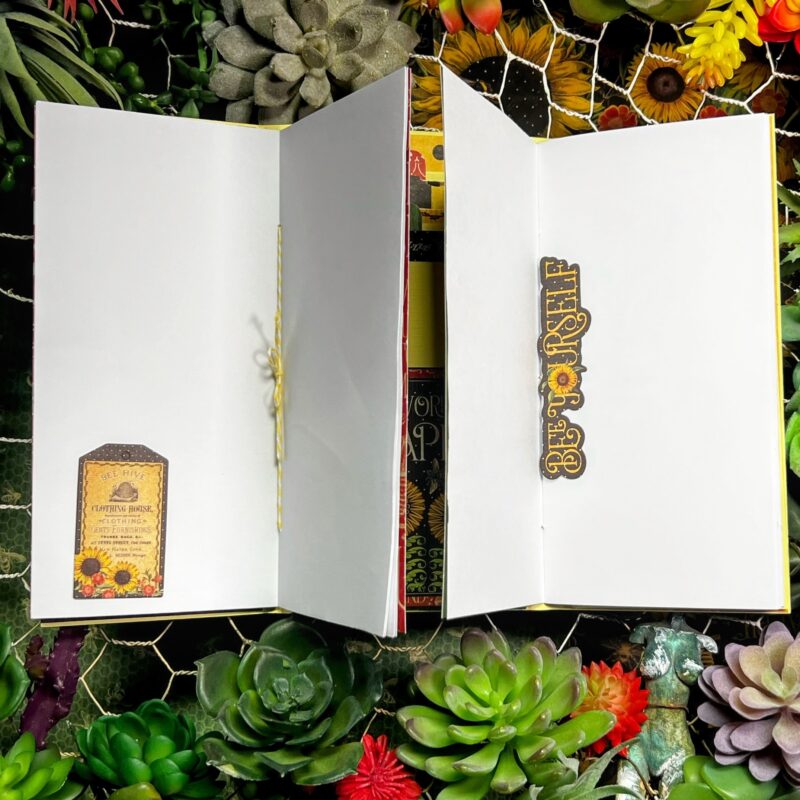 The notebooks feature a pocket and a sweet little tag. Inside, there’s blank paper adorned with just a bit of ephemera and Let It Bee die cuts- leaving plenty of space for journaling your adventures.