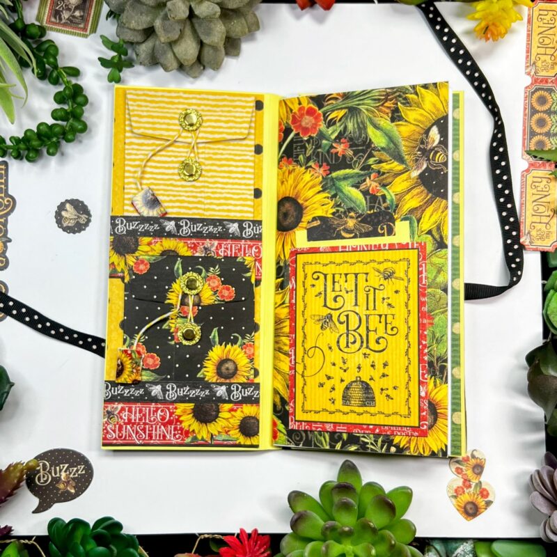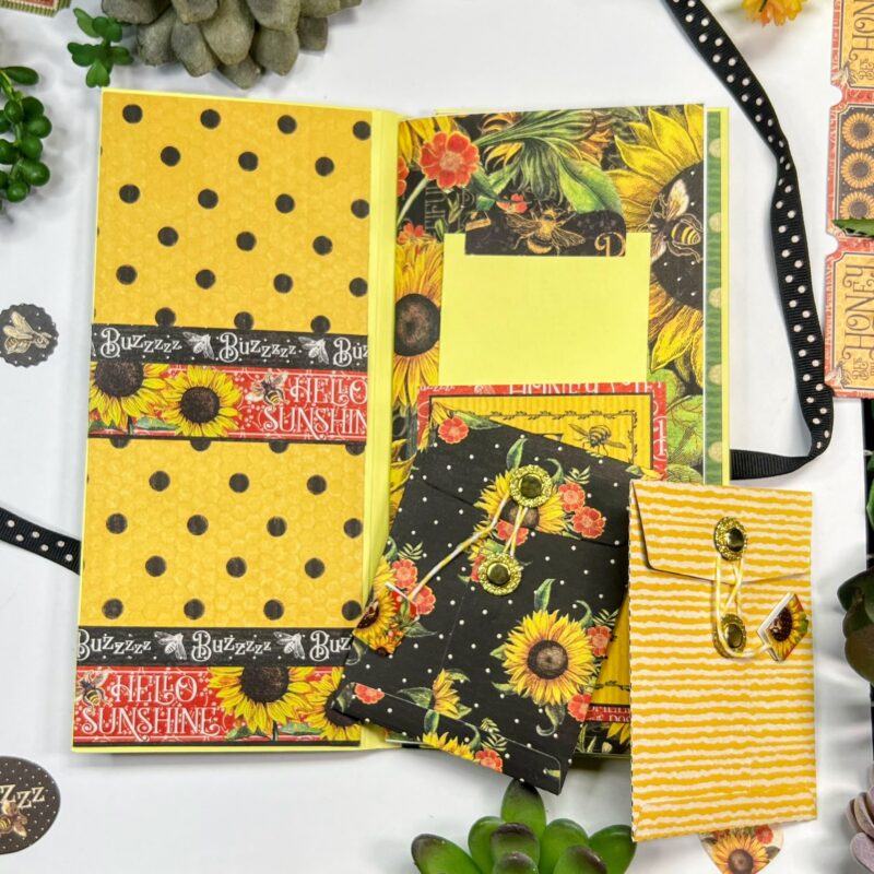 “I’m so happy to be back on the blog this month sharing a handmade Travel Folio using the gorgeous Let It Bee collection. This folio is perfect for summer adventures and memory keeping on the go! Let me walk you through some of the fun details.
