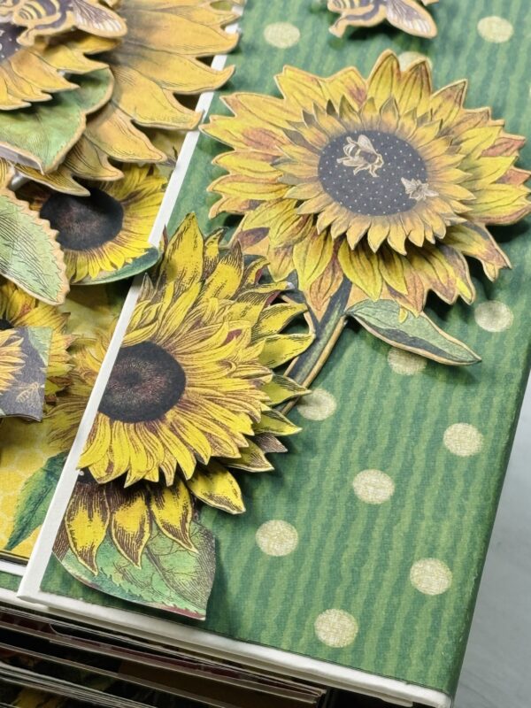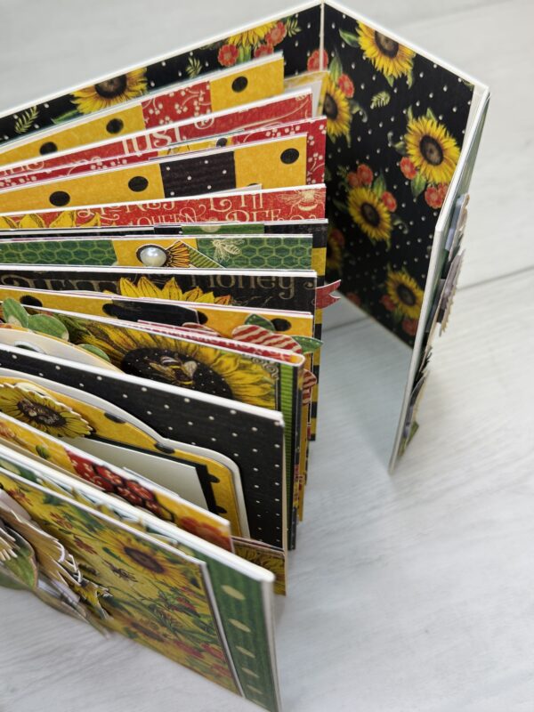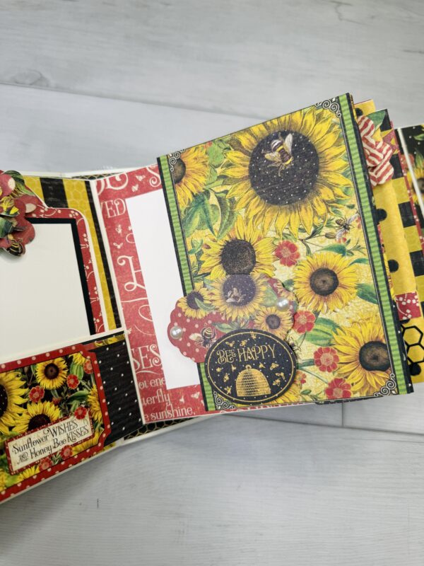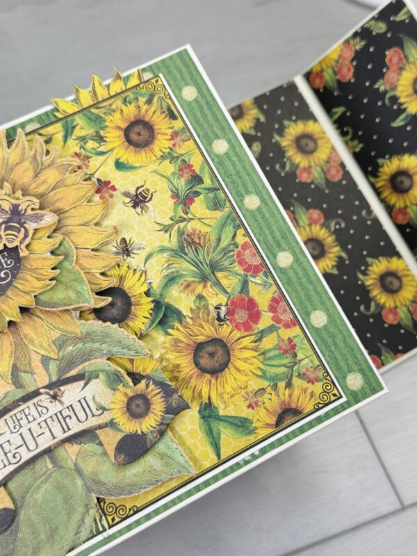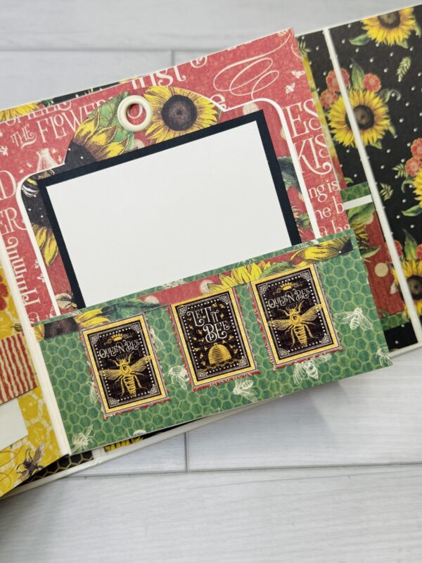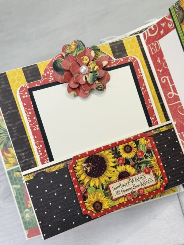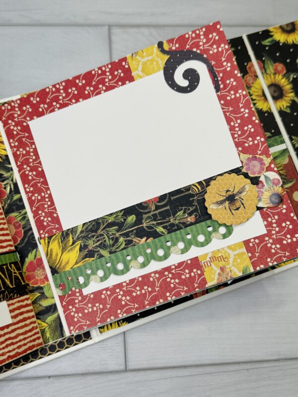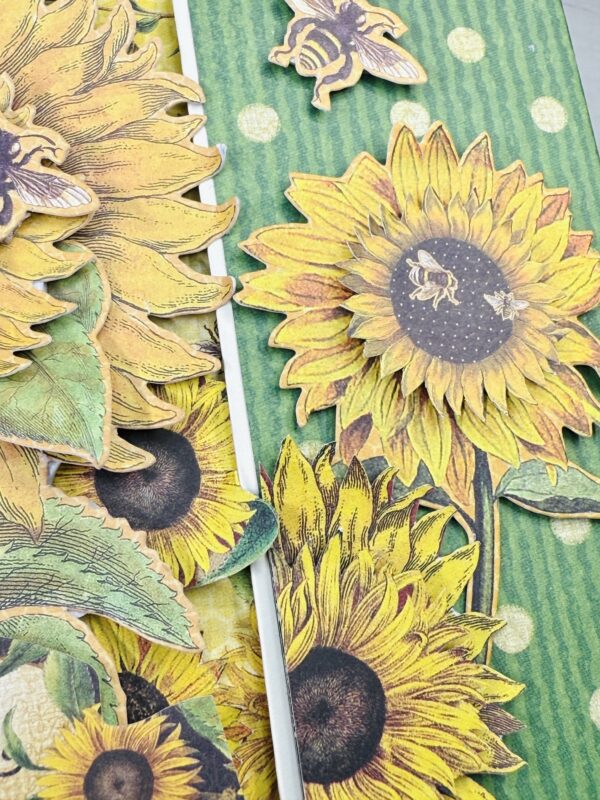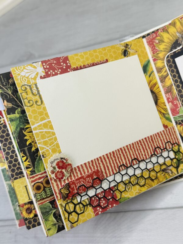 Teamed up with the Square Tag & Pocket Wrap-Around Album, I got to dive into the gorgeous patterns, textures, and colors of this collection. Every page came to life with golden sunflowers, cheerful bees, and those eye-catching bright red poppies that practically pop right off the paper. It’s like holding a happy little garden in your hands!