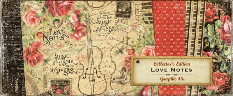 Love Notes is my all time G45 favorite paper collection!! LOVE the rose images for fussy cutting. Love the music notes and the musical instruments. While not usually a fan of black (outside of Halloween), this is my exception…black really works in this wonderful collection!! Looking forward to adding both paper pack sizes to my stash. I intend to always have this collection in my stash!!