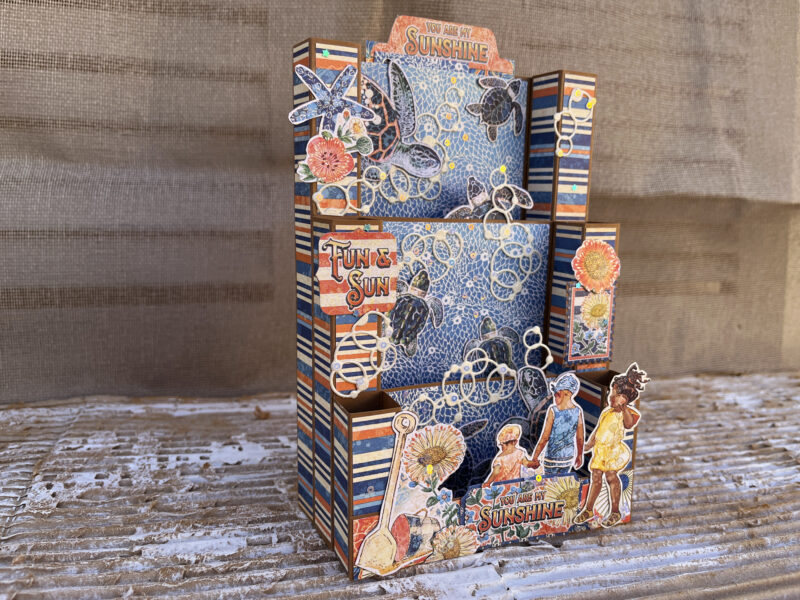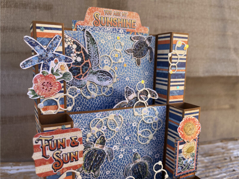 Join us for another #G45LeveledUp project as Graphic 45 Brand Ambassador, Cecilia Zertuche, unveils the phenomenal Pocket Pillar Card Tutorial featuring our Sun Kissed – Collector’s Edition. Watch the video tutorial and let your imagination set sail! Be sure to give thanks to Cecilia in the comments below for sharing this next level handmade card!