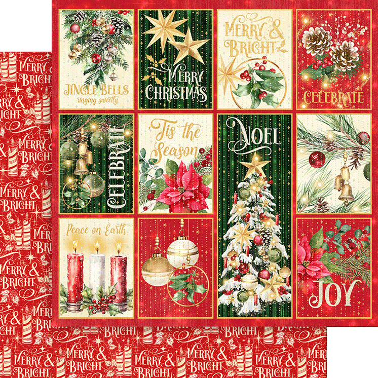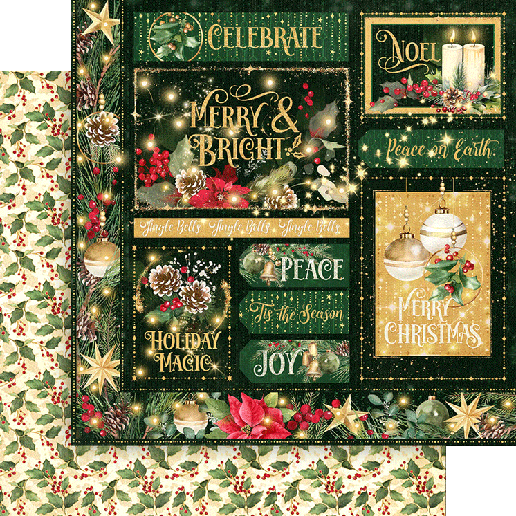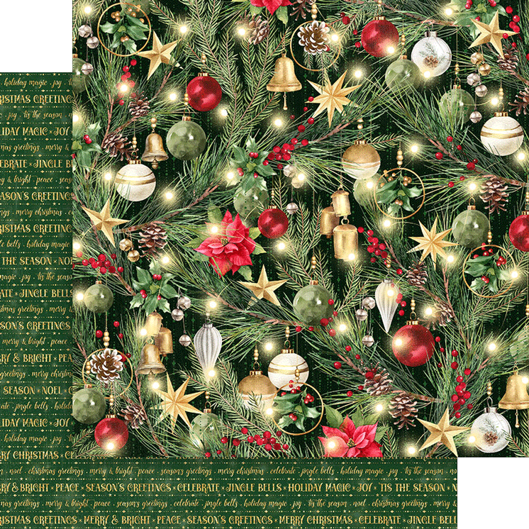 Celebrate the joy of the holiday season with Graphic 45’s “Merry and Bright” paper collection. This festive assortment dazzles with a vibrant color palette of evergreen, cranberry red, metallic gold, and sparkling silver. The imagery is a delightful showcase of decked-out Christmas trees, festive ornaments, snow-covered pine cones, and the classic poinsettia. Perfect for all your holiday crafting needs, “Merry and Bright” brings the magic and sparkle of Christmas to life, adding a touch of elegance and cheer to your creative projects.