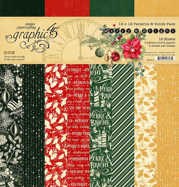 Welcome to Day 2 of our Graphic 45 Holiday Sneak Peeks! Today, we’re thrilled to introduce you to our Merry & Bright paper collection, a festive and vibrant assortment perfect for all your holiday crafting needs. Featuring a delightful palette of evergreen, cranberry red, metallic gold, and sparkling silver, this collection brings the magic and cheer of Christmas to life. Be sure to check out all the exciting products, from the 12×12 Collection Pack to the charming Sticker Set and Ephemera. These vintage-inspired Christmas papers will be perfect for mini albums, scrapbook pages, holiday cards, and decorations. Don’t miss your chance to win one of our $100+ Holiday Release Prize Packages! Simply leave a comment on our blog, Facebook, or Instagram for a chance to win. Winners will be announced on Friday, July 12, 2024. Happy Papercrafting!